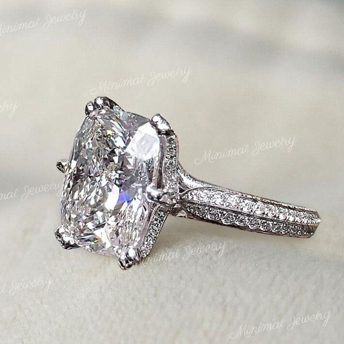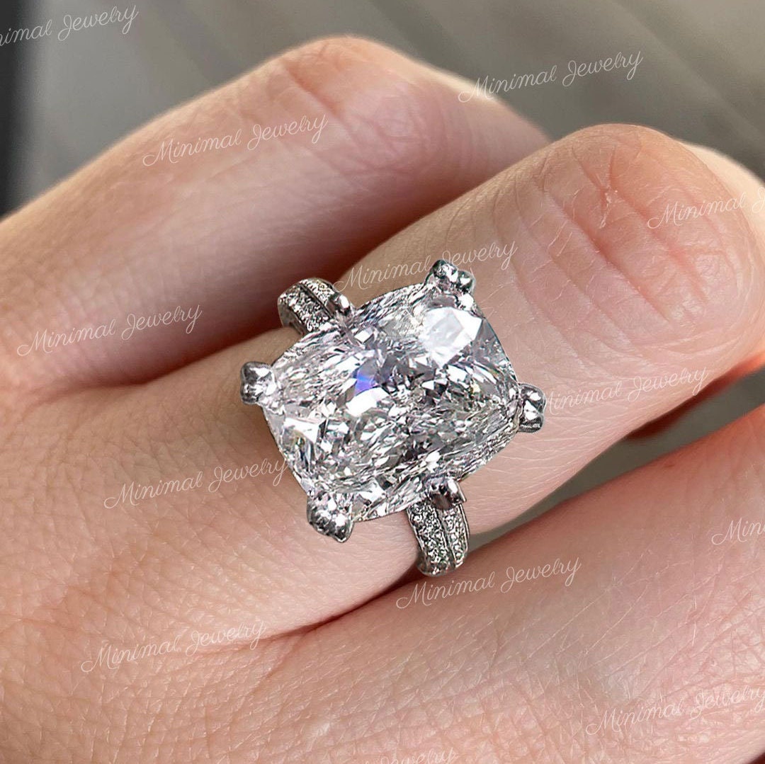 Cushion Cut Moissanite Engagement Ring 12CT Large Elongated Cushion Solitaire ring Hidden Halo Cathedral Wedding Anniversary Ring for Women