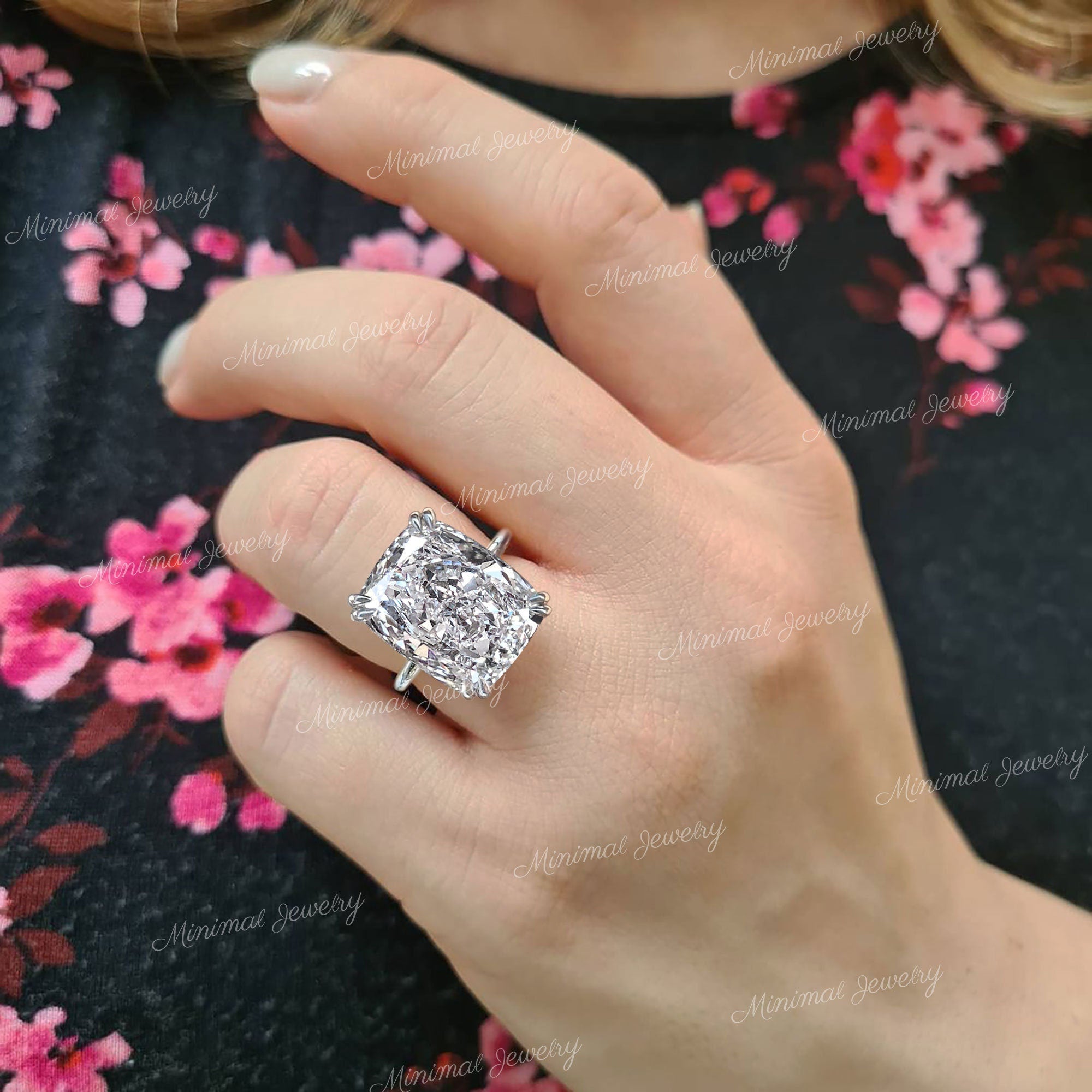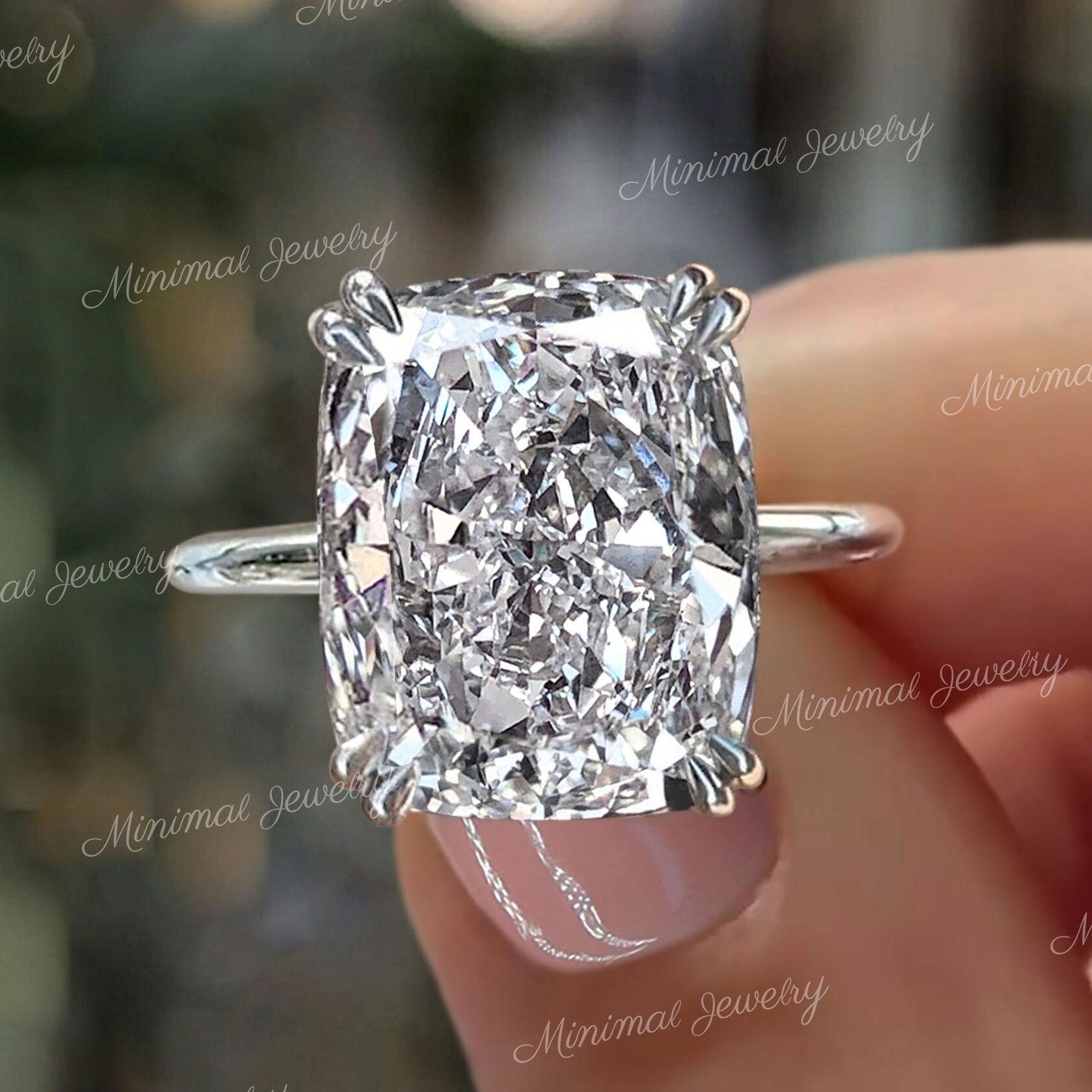 cushion cut moissanite engagement ring 14k gold 11.5ct Elongated Cushion Solitaire Hidden Halo Large Wedding Anniversary ring for Women