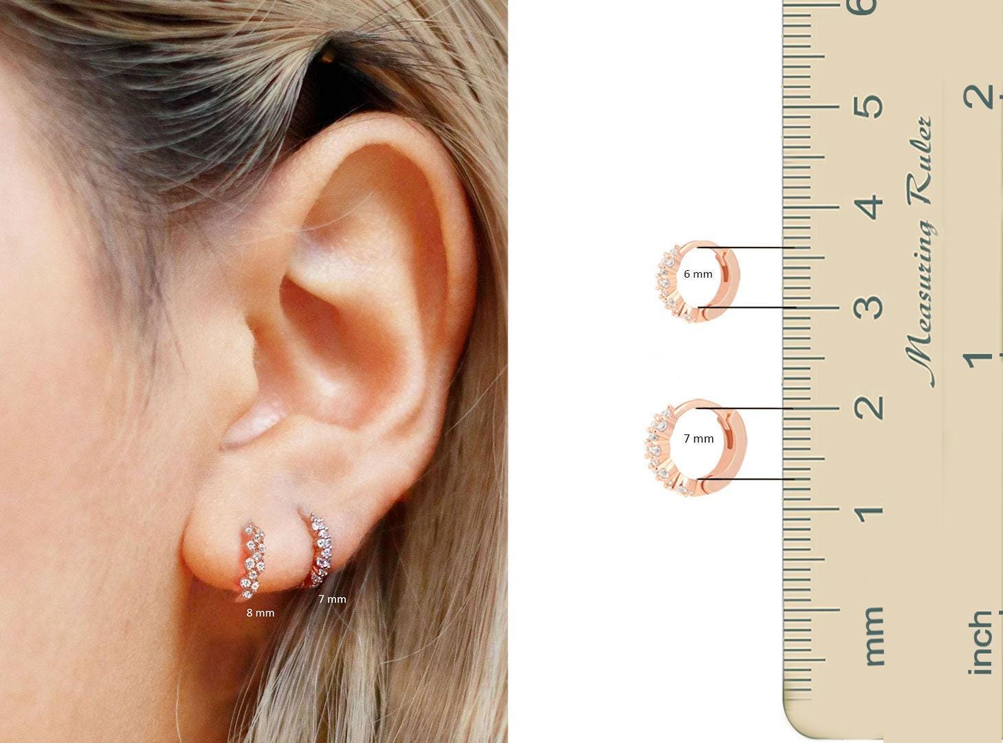 Diamond helix hoop,helix earring,cartilage hoop,14k solid gold hoops,helix piercing,diamond huggies•tiny•diamond hoops•cartilage earring