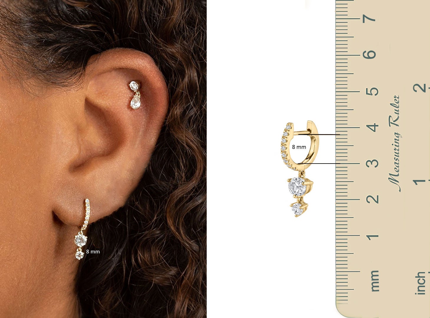 Diamond hoop earrings with charm,14k solid gold,huggie hoop earrings,diamond huggie earrings,dangle,small•diamond hoops,charm hoop earrings