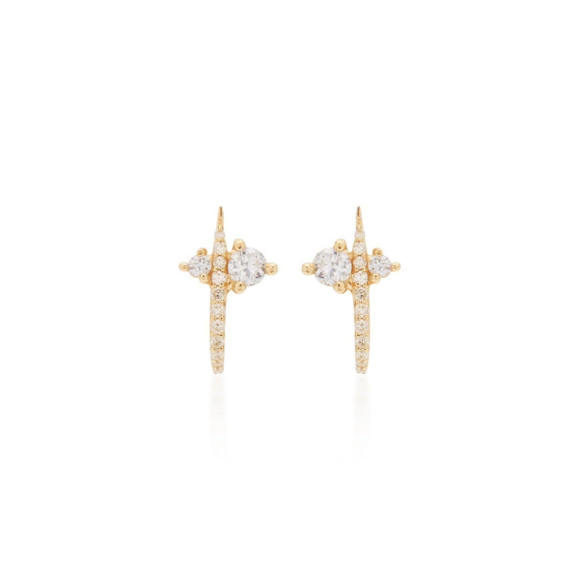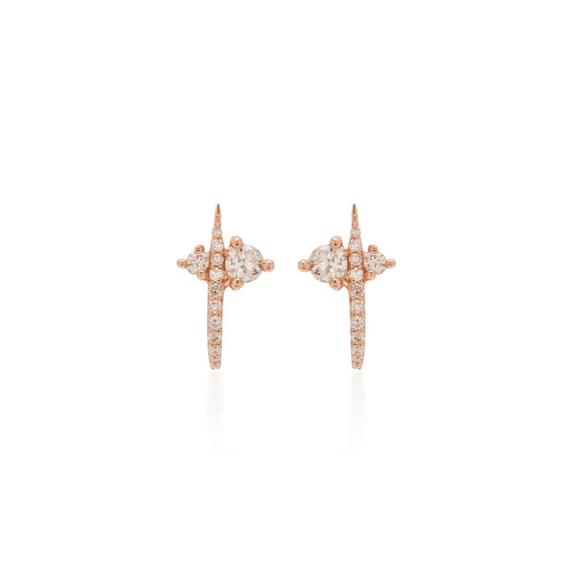 Diamond huggie earrings,14k solid gold huggie earrings,suspender earrings,open half hoop earrings,hook,diamond earrings•diamond huggies
