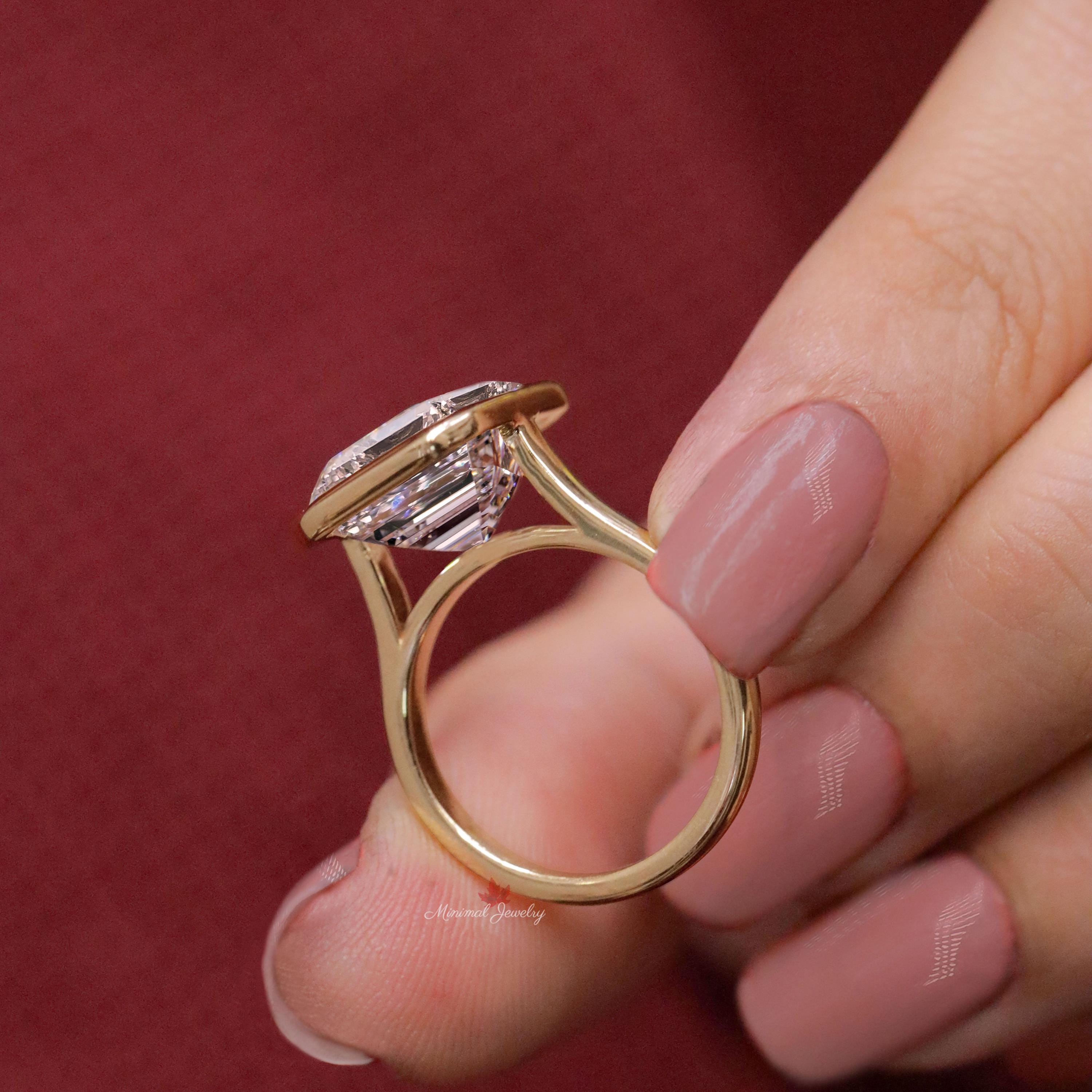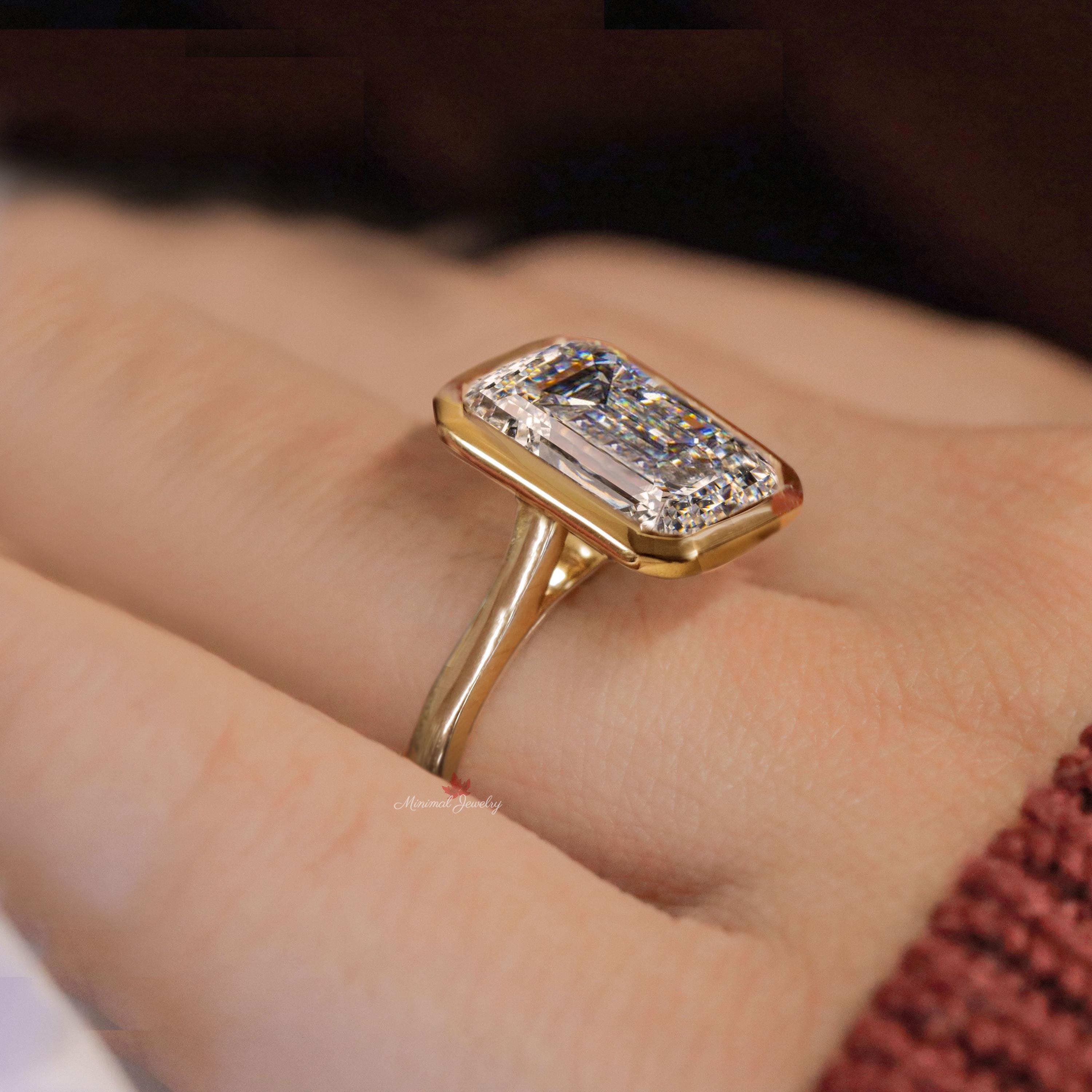 Emerald cut bezel set moissanite ring 8CT large Emerald cut engagement ring gold cathedral wedding ring big diamond anniversary ring women