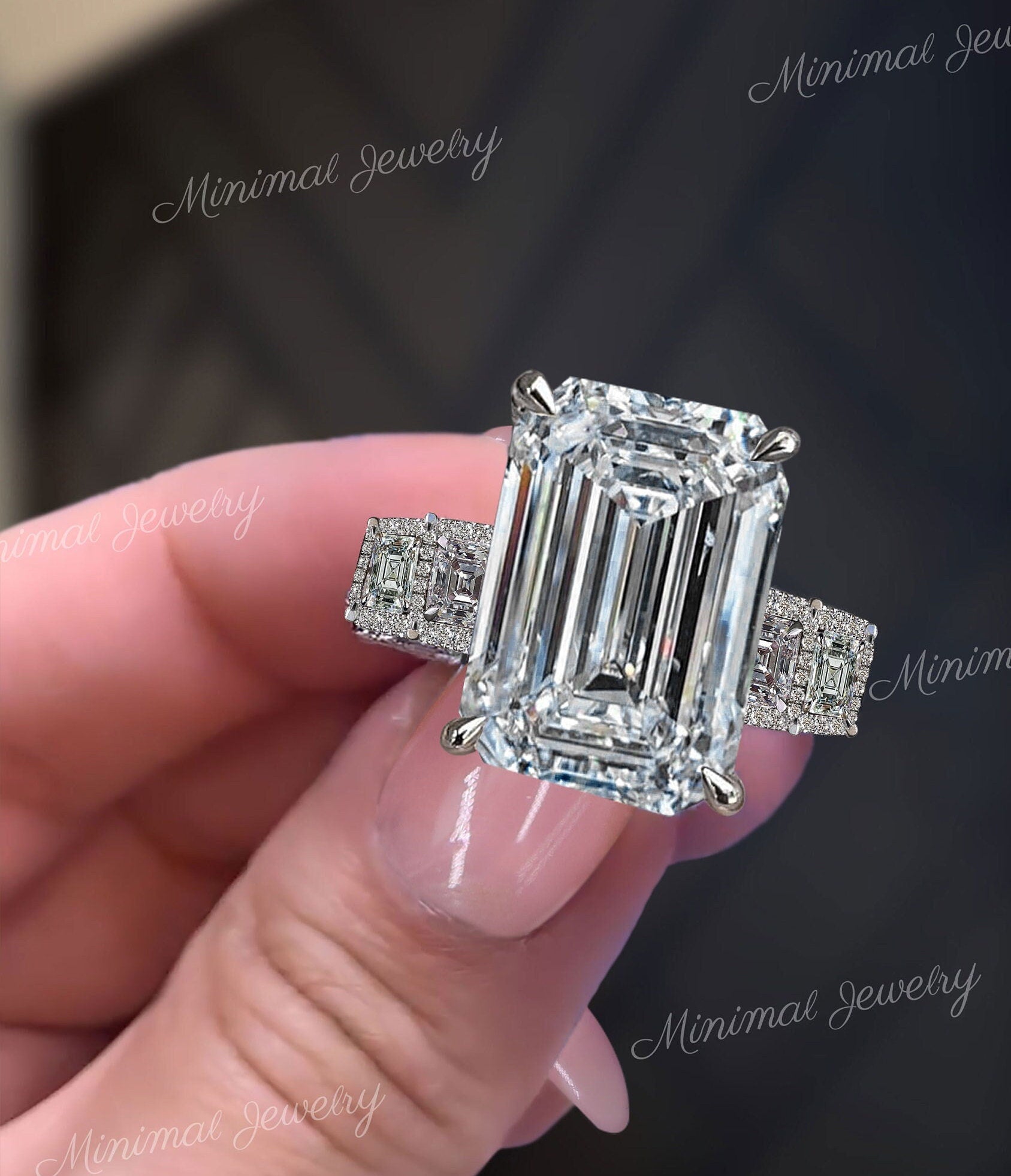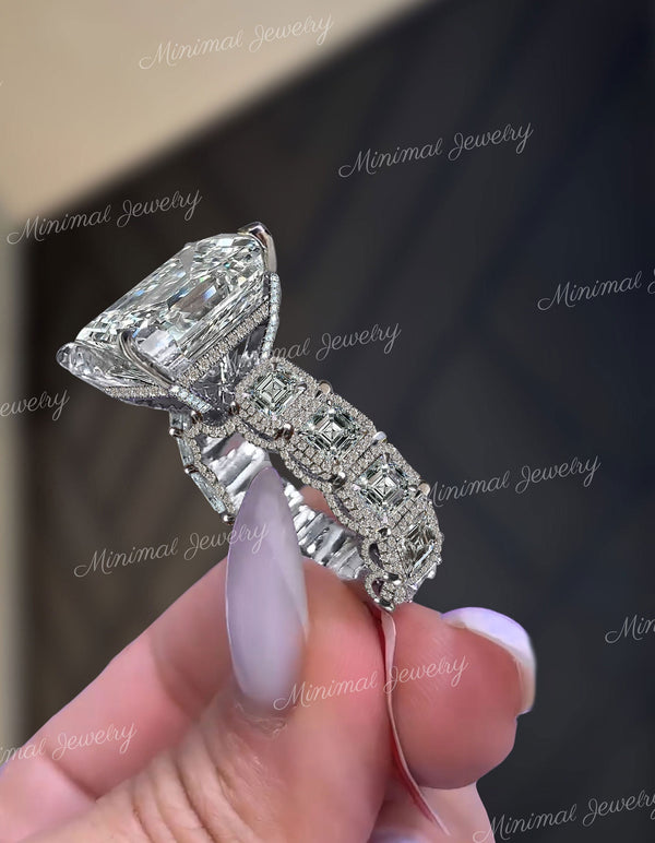 Handmade Celebrity style 11.5 TCW Large Emerald Cut Moissanite Engagement Ring,Hidden...