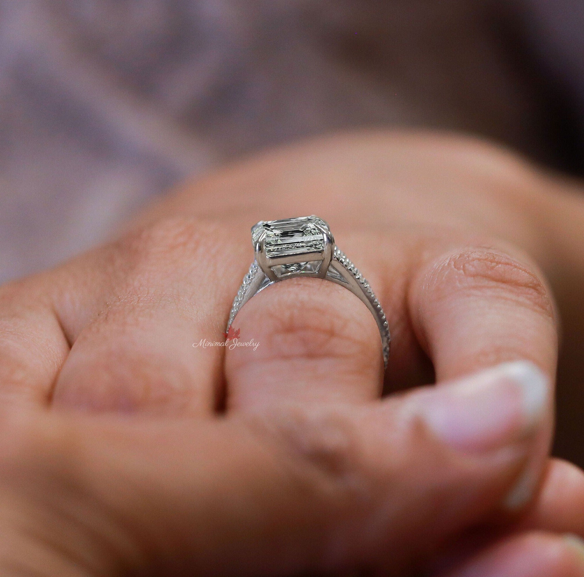 Emerald cut moissanite engagement ring split band solitaire 4.5 carat unique emerald cut moissanite ring split shank wedding ring for women