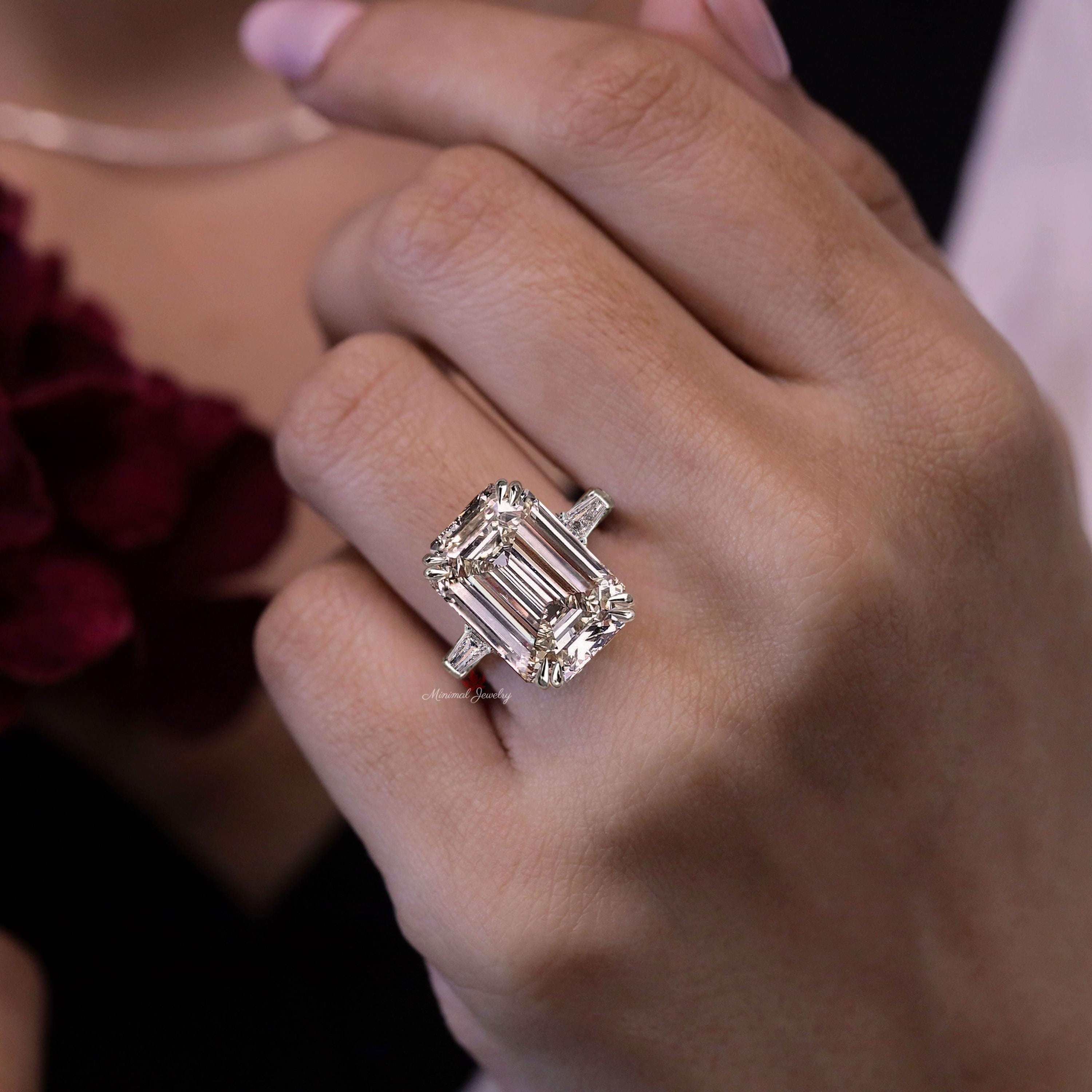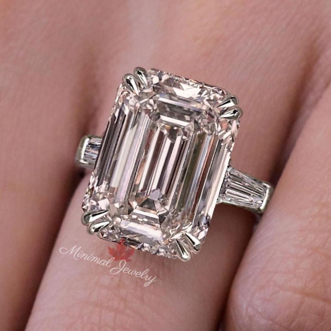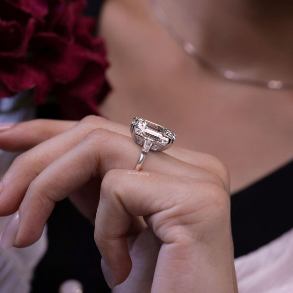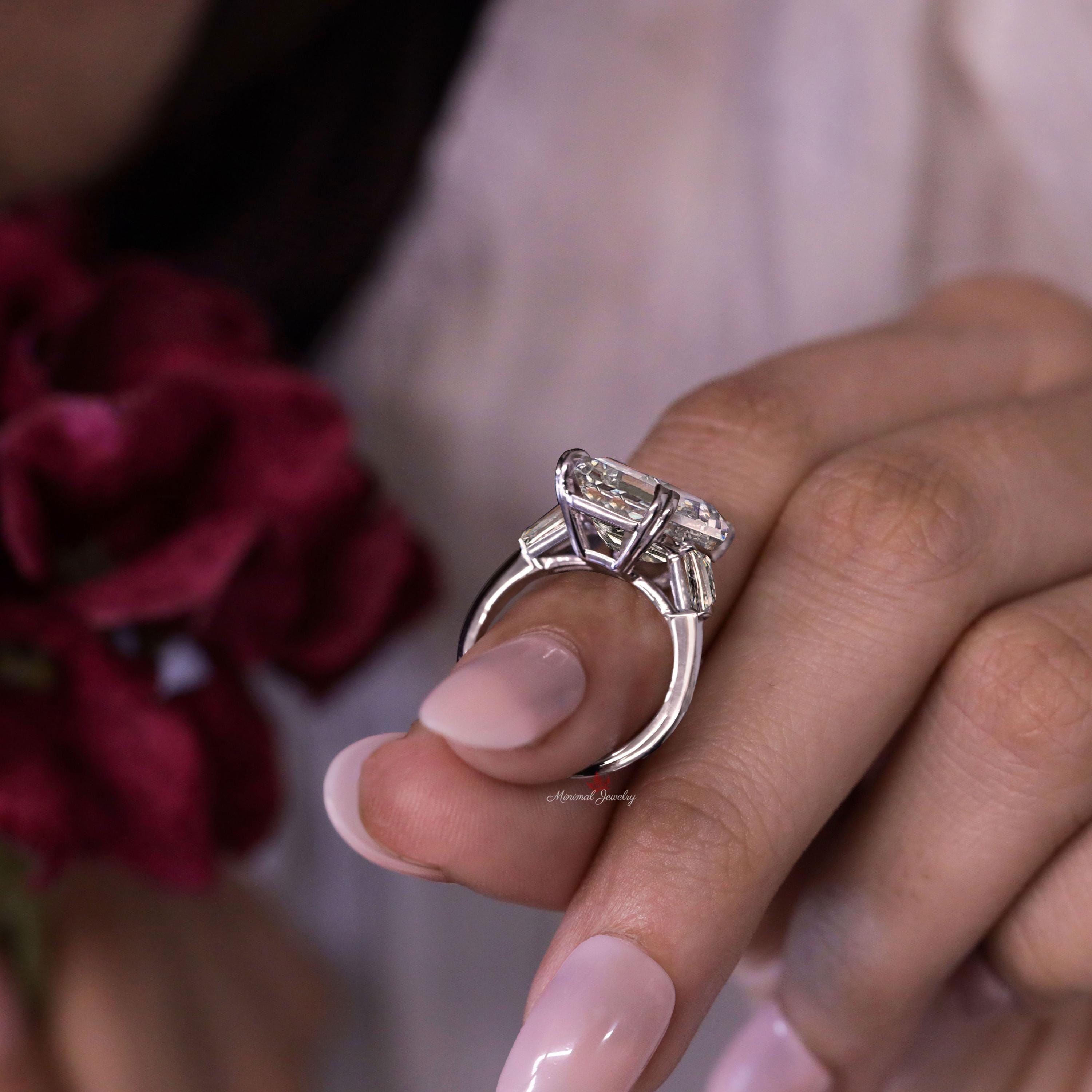 Emerald Cut Moissanite Ring Three Stone Engagement Ring side Baguette 12CT large Statement Wedding Ring Big Diamond Anniversary Ring women