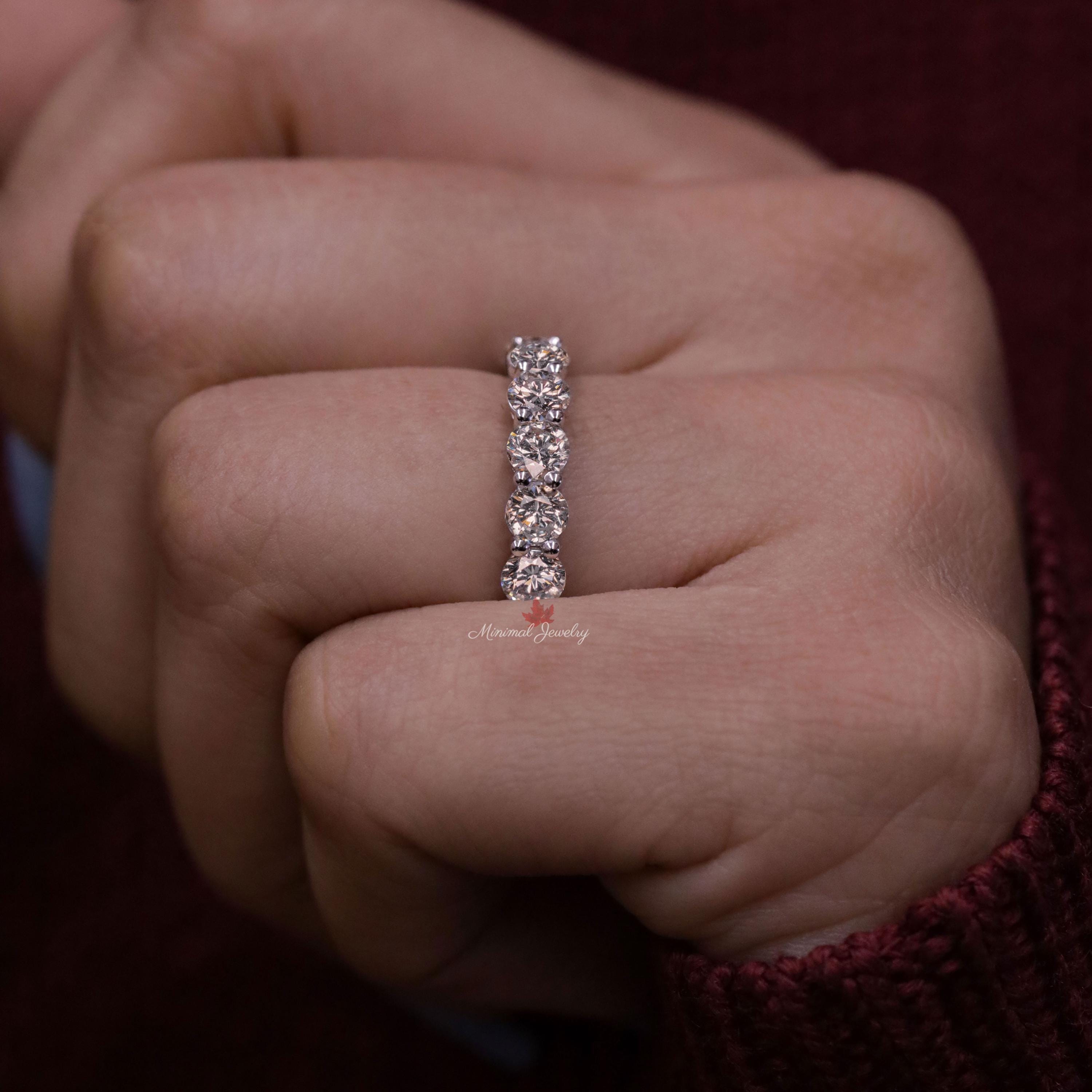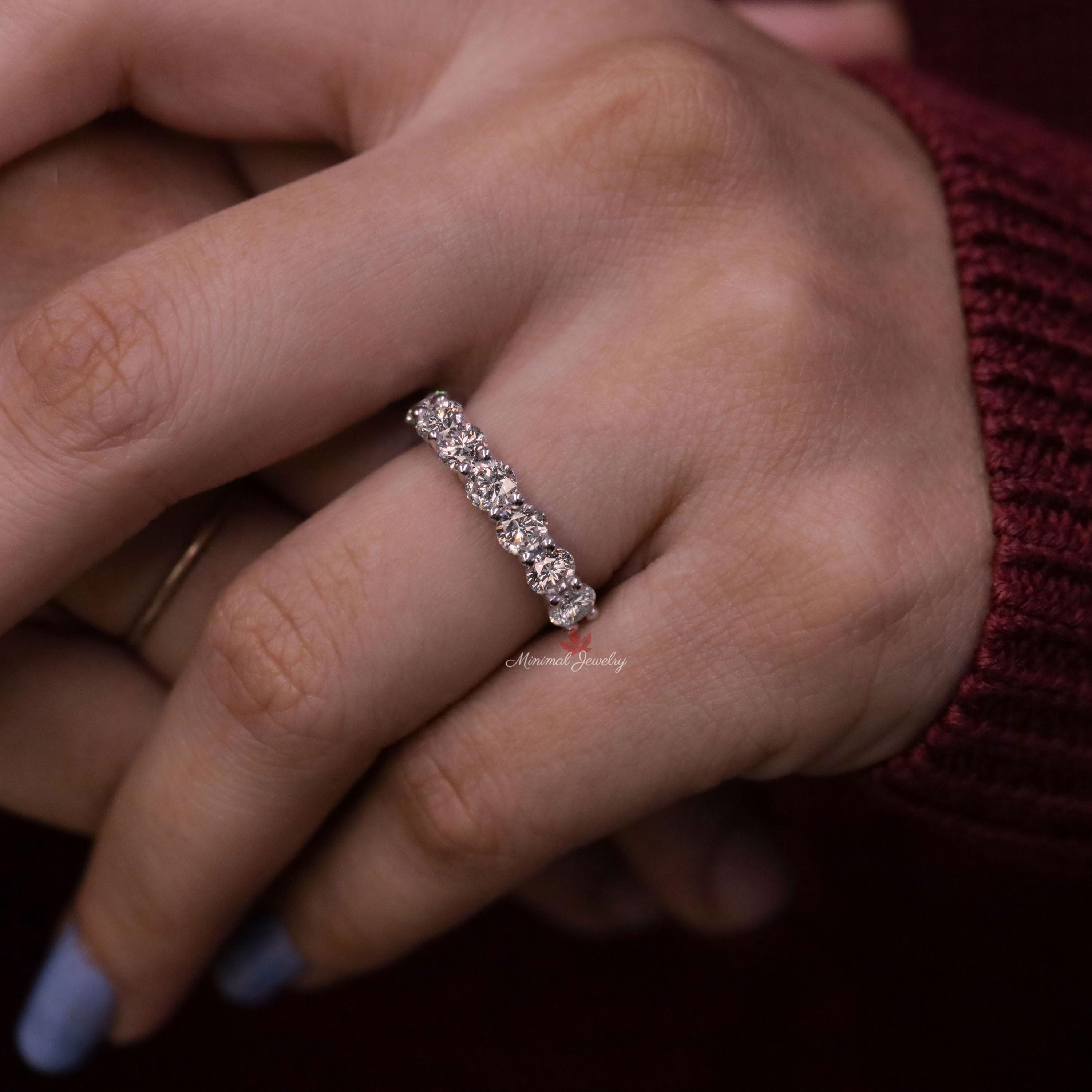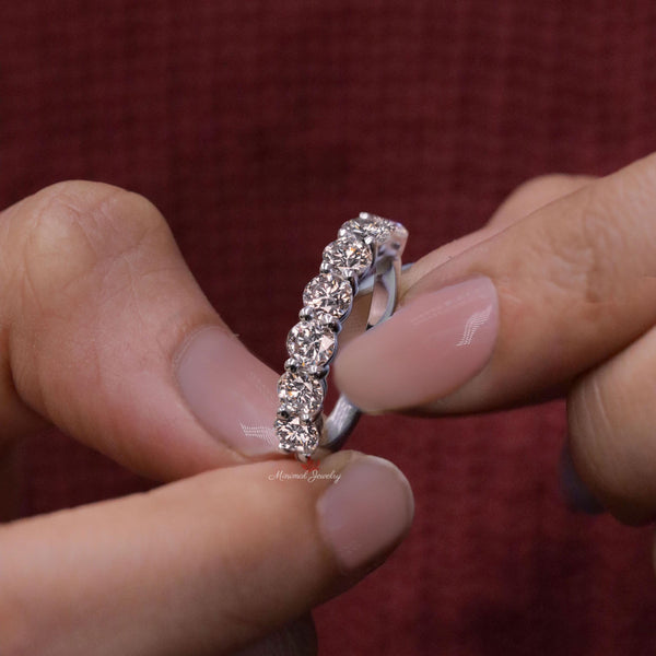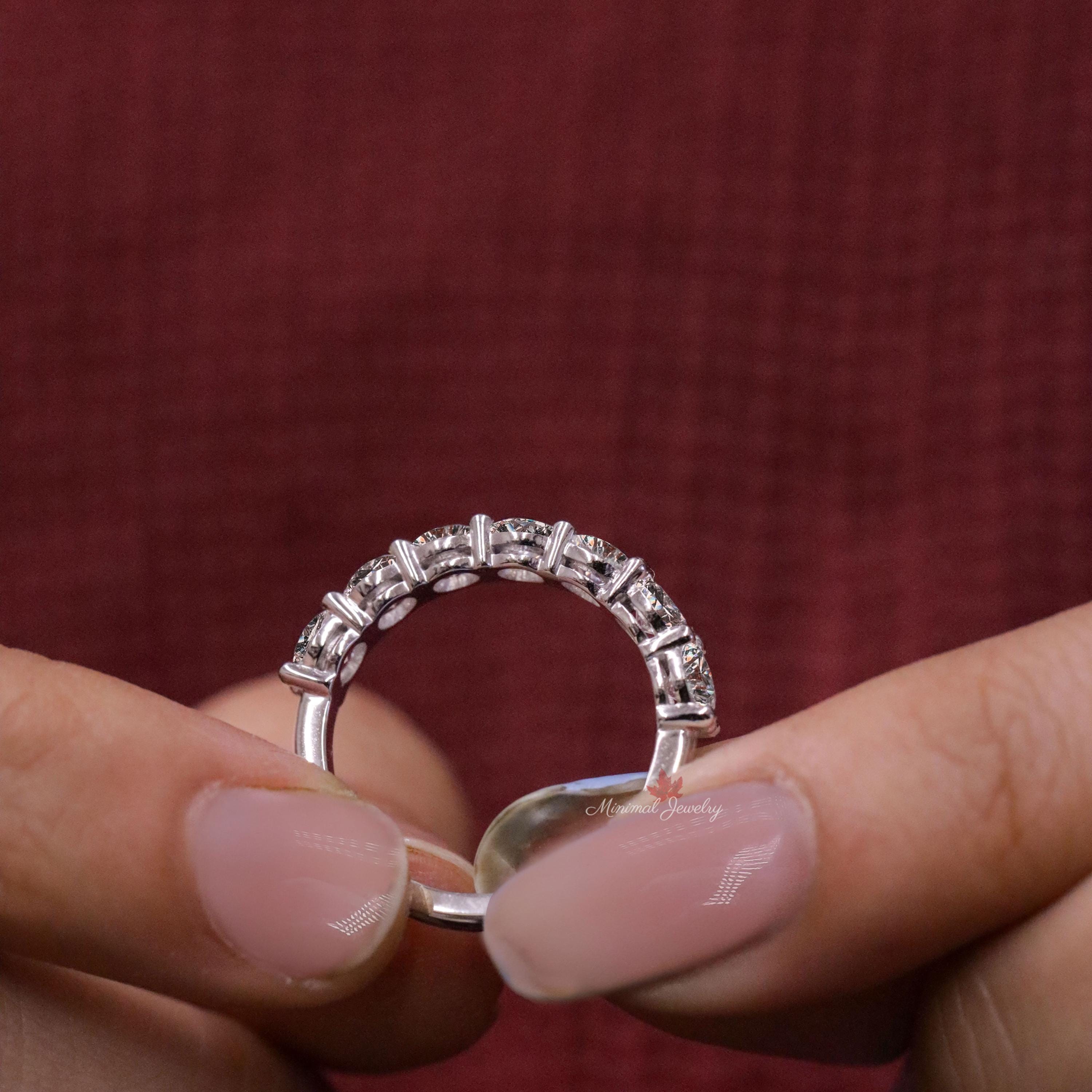 Half eternity wedding band 7 stone moissanite wedding band 14k gold 2.5mm dainty wedding band women stackable ring 7th anniversary gift band