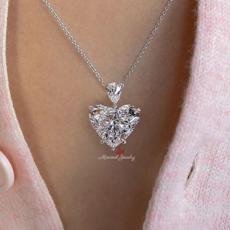 Heart moissanite pendant necklace,18k/14k solid gold chain necklace 11.37CT solitaire pendant necklace,moissanite necklace, iced out pendant