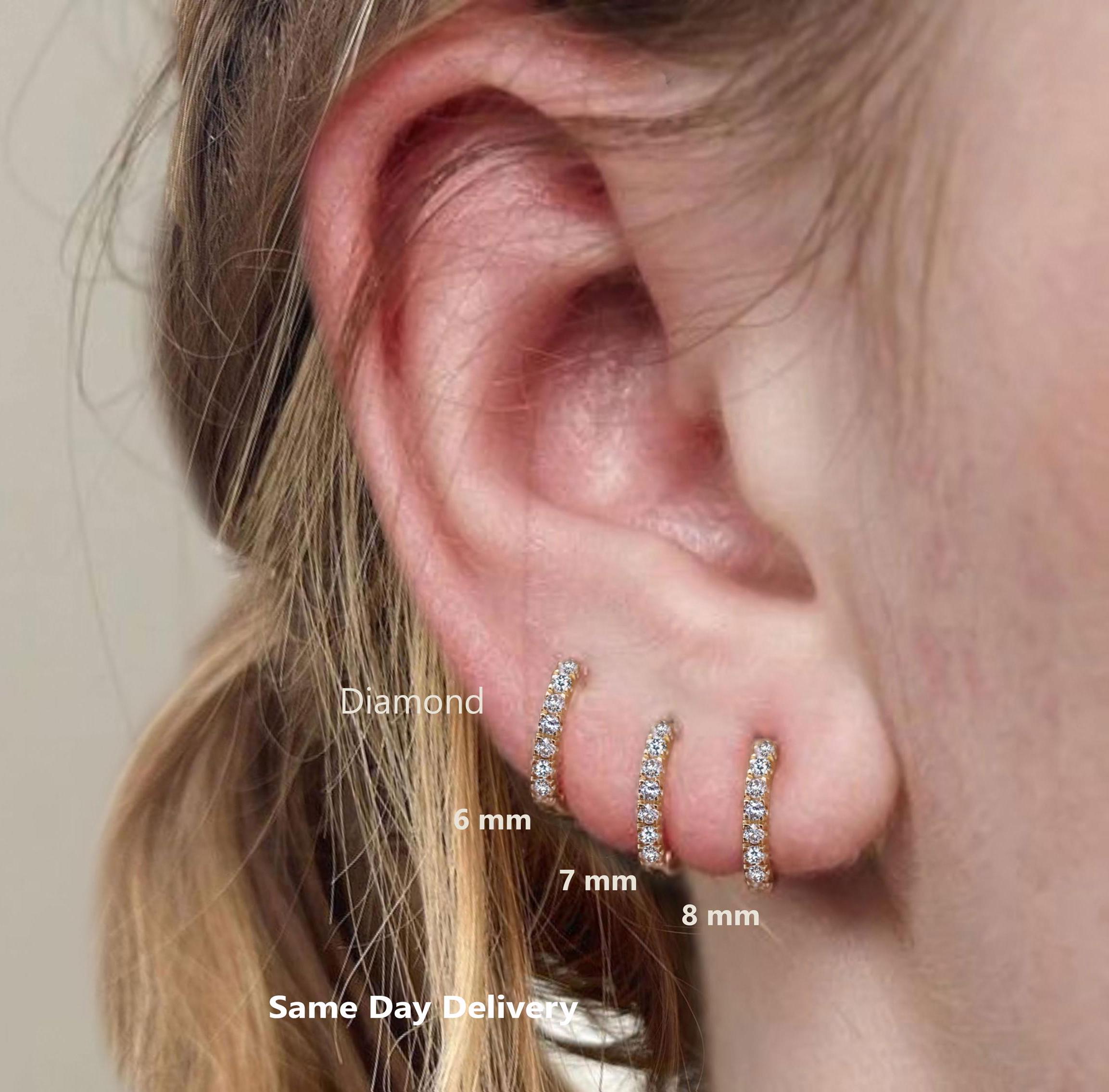 huggie hoop earrings,diamond huggies,14k solid gold huggie earrings,diamond hoops,cartilage hoop,cartilage earrings•helix hoop•tiny hoops