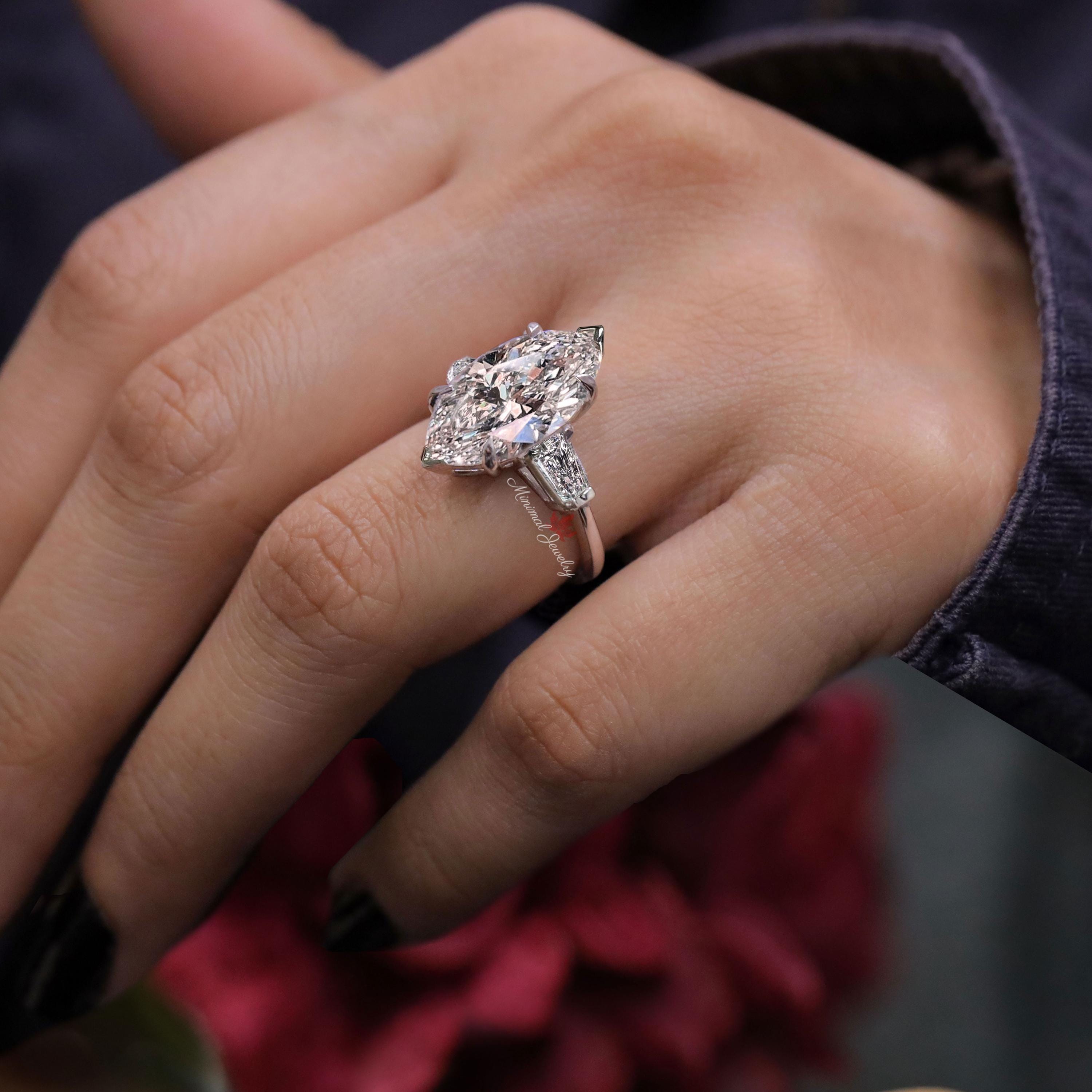 Lab Grown Diamond Ring 7CT marquise engagement ring IGI certified large diamond Three stone ring diamond wedding ring for women anniversary