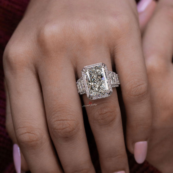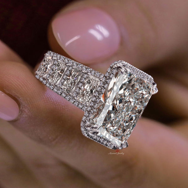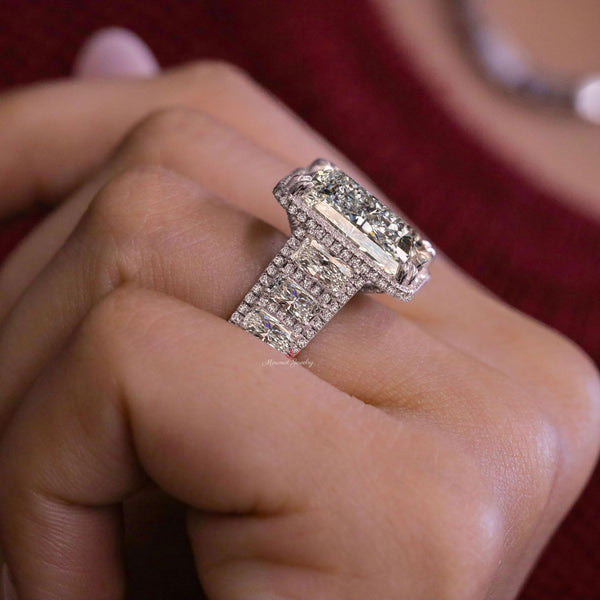 Lab grown Diamond Ring 8 CT Radiant cut engagement ring eternity band solitaire IGI certified large Diamond wedding anniversary ring women