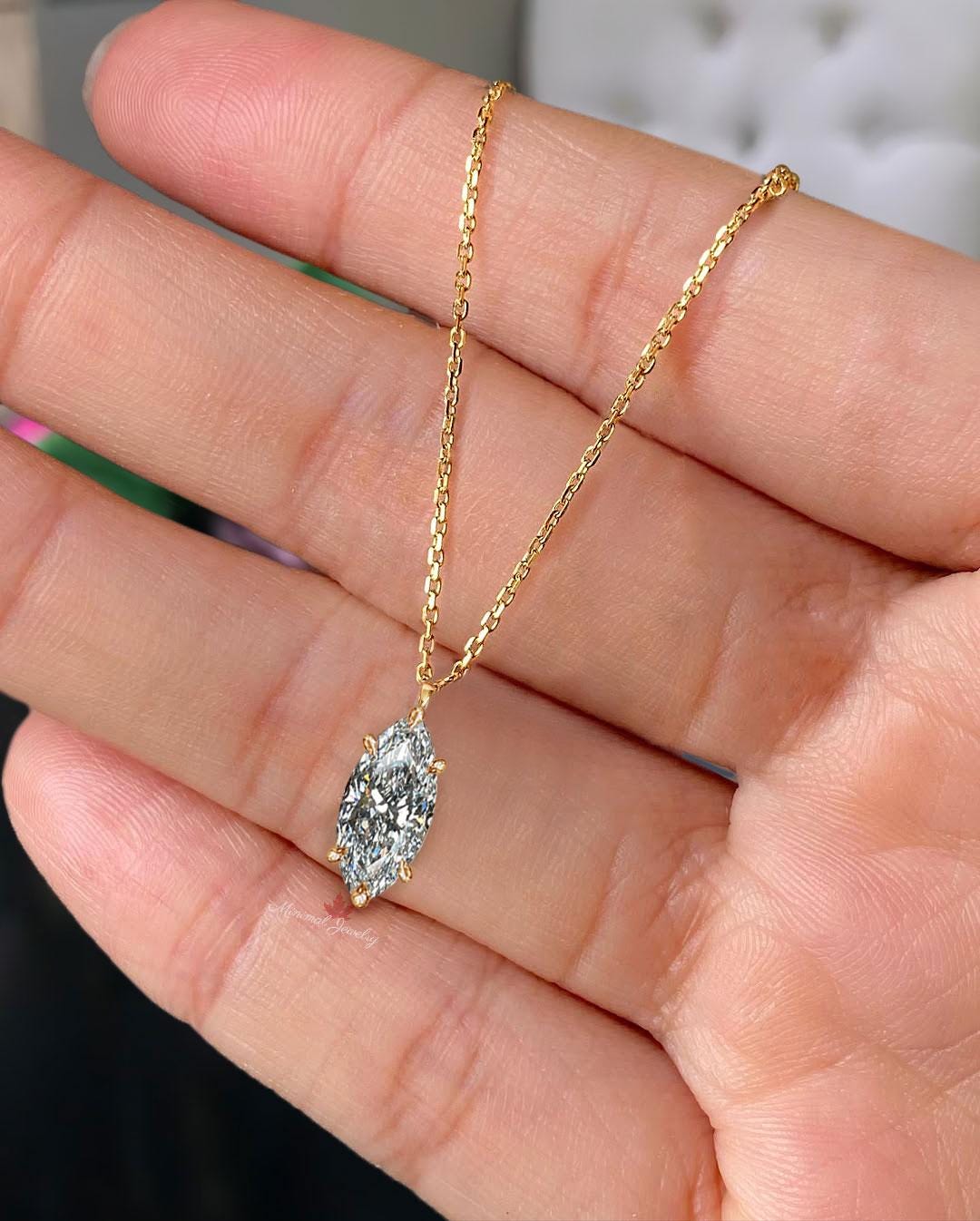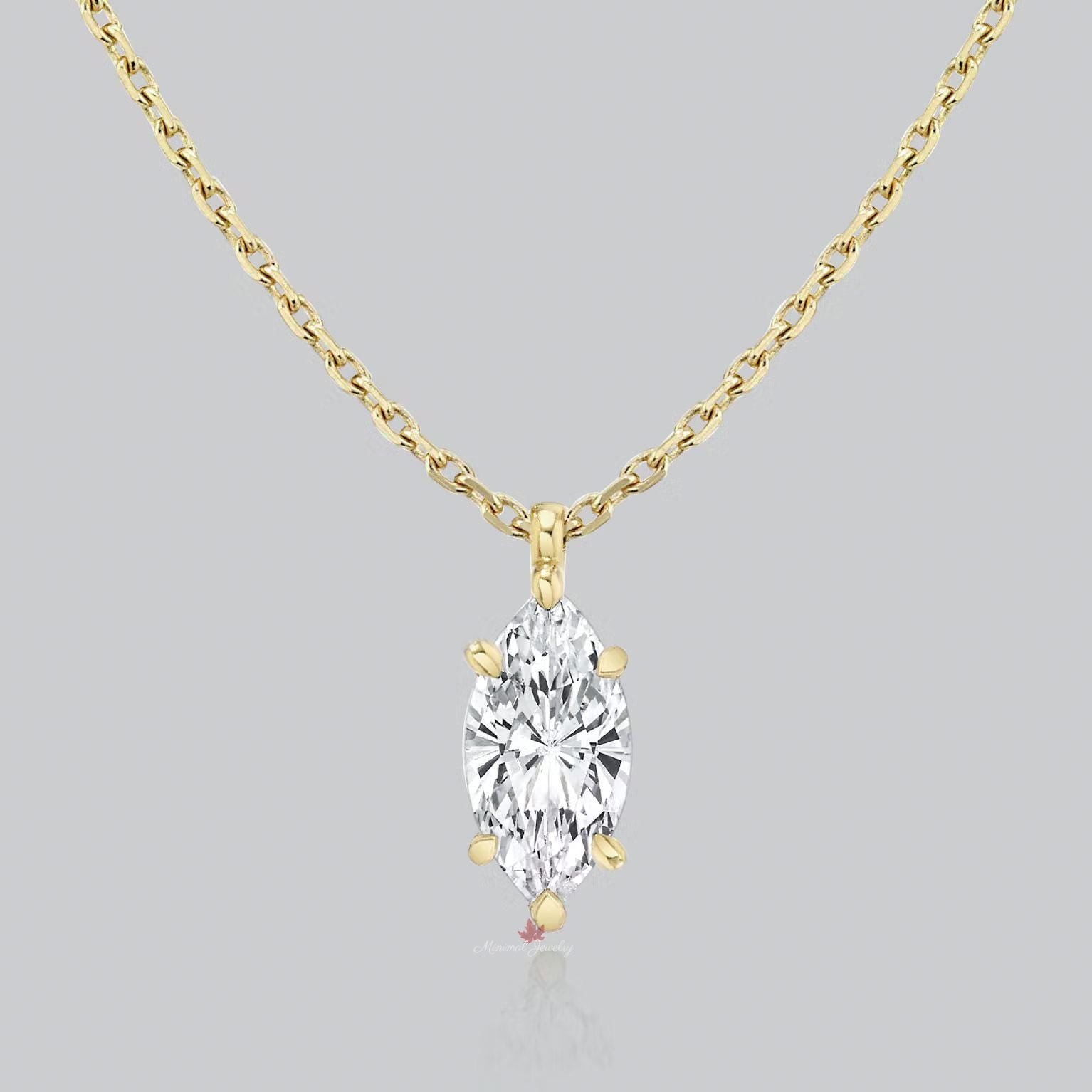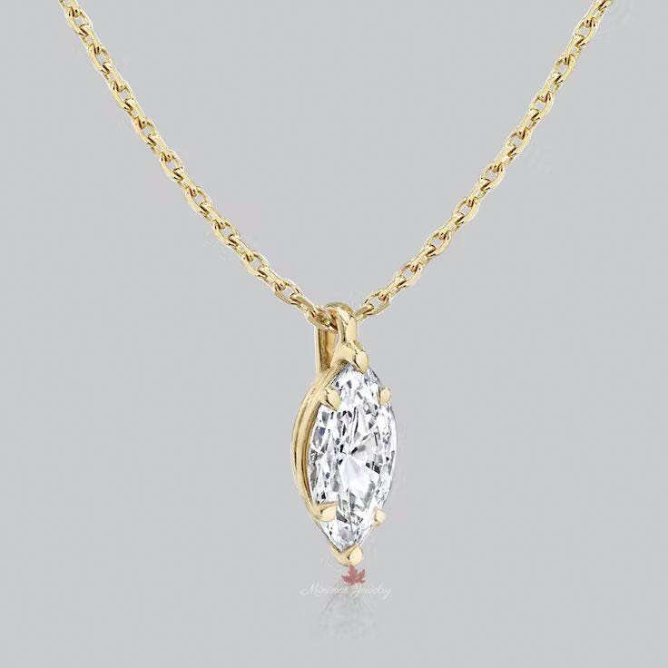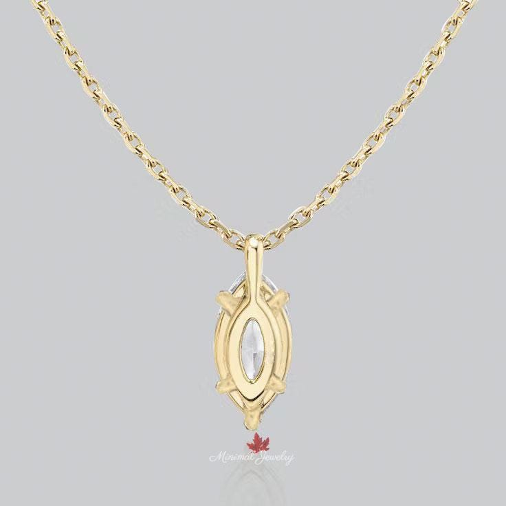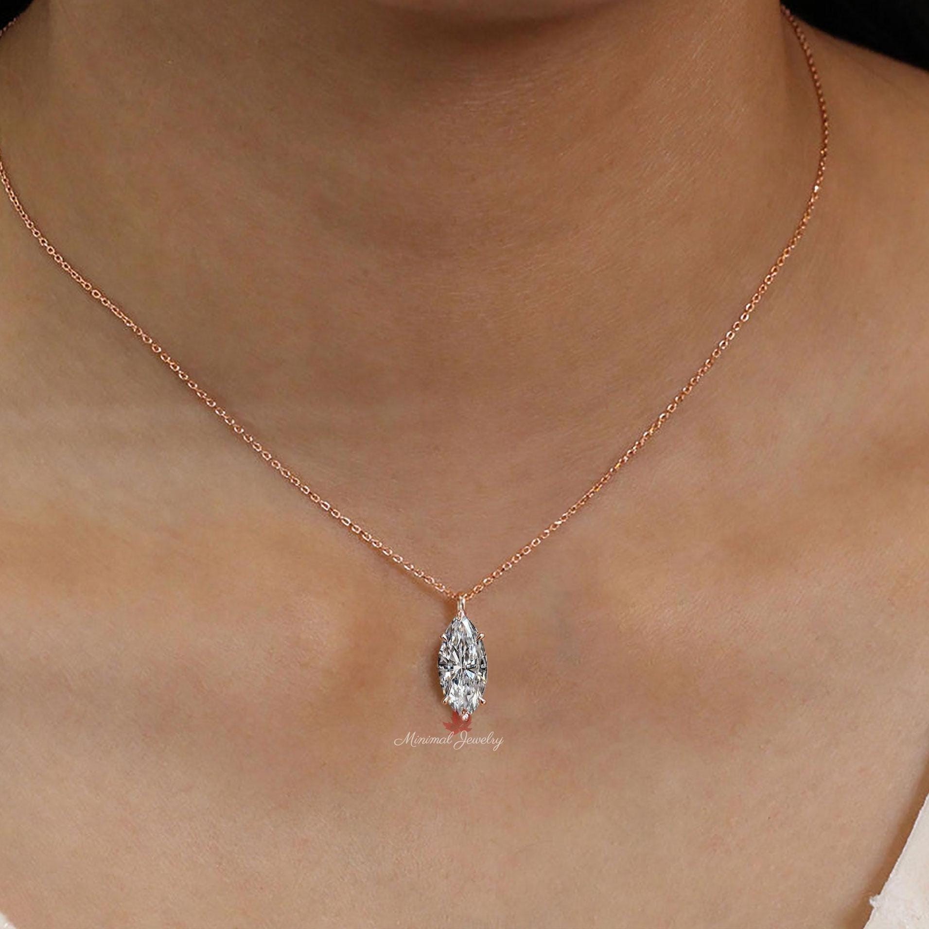 Marquise moissanite pendant necklace,18k/14k solid gold chain necklace,solitaire moissanite necklace,minimalist rose gold necklace