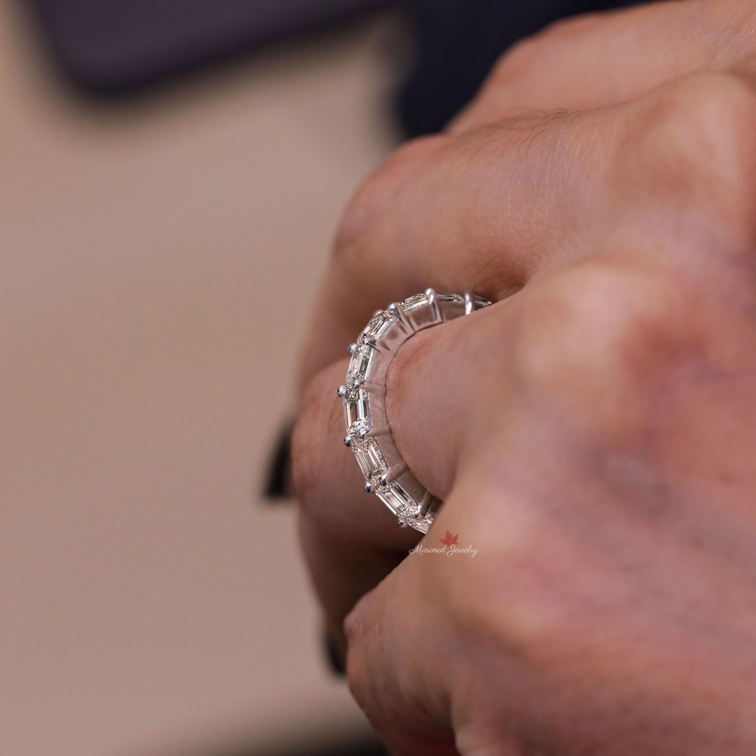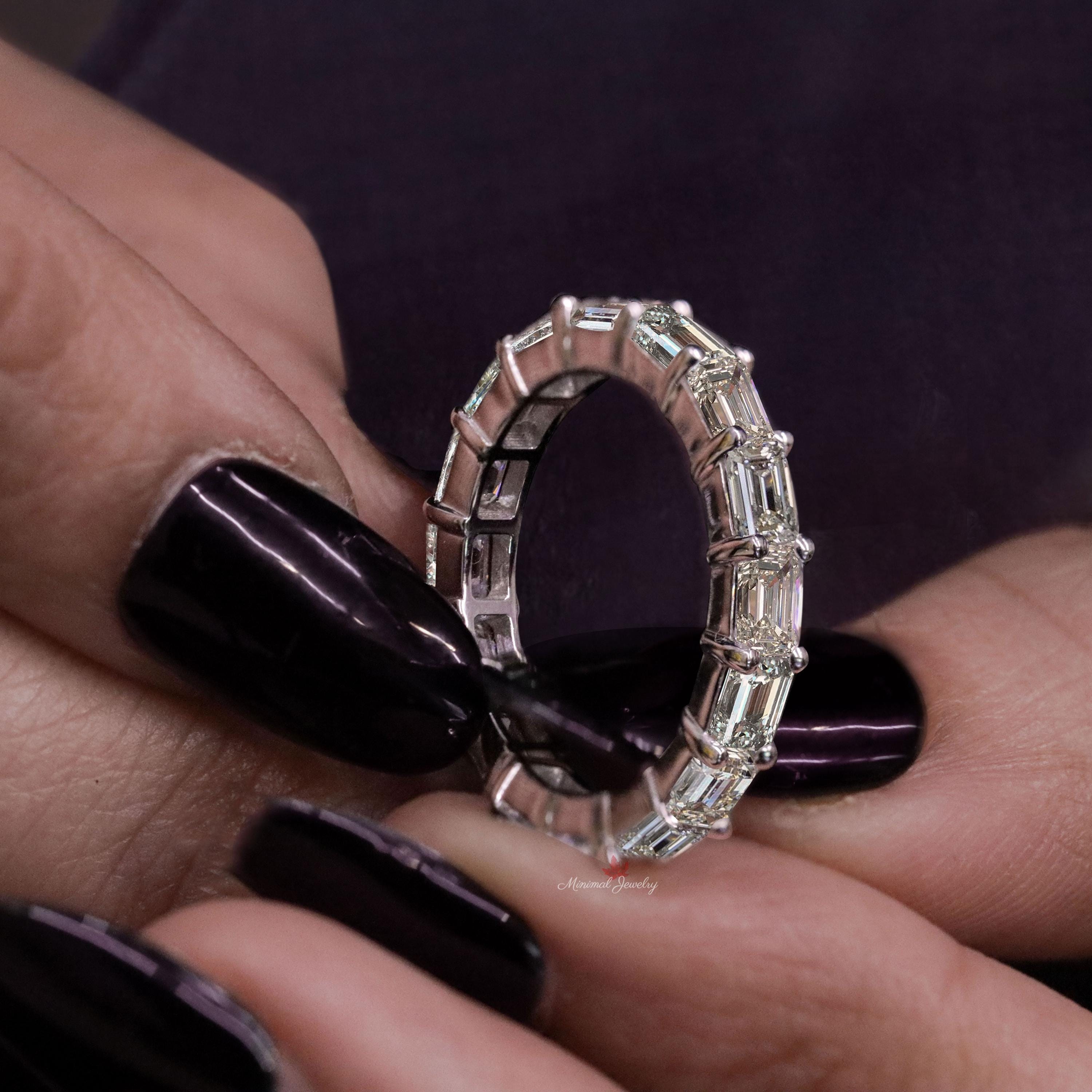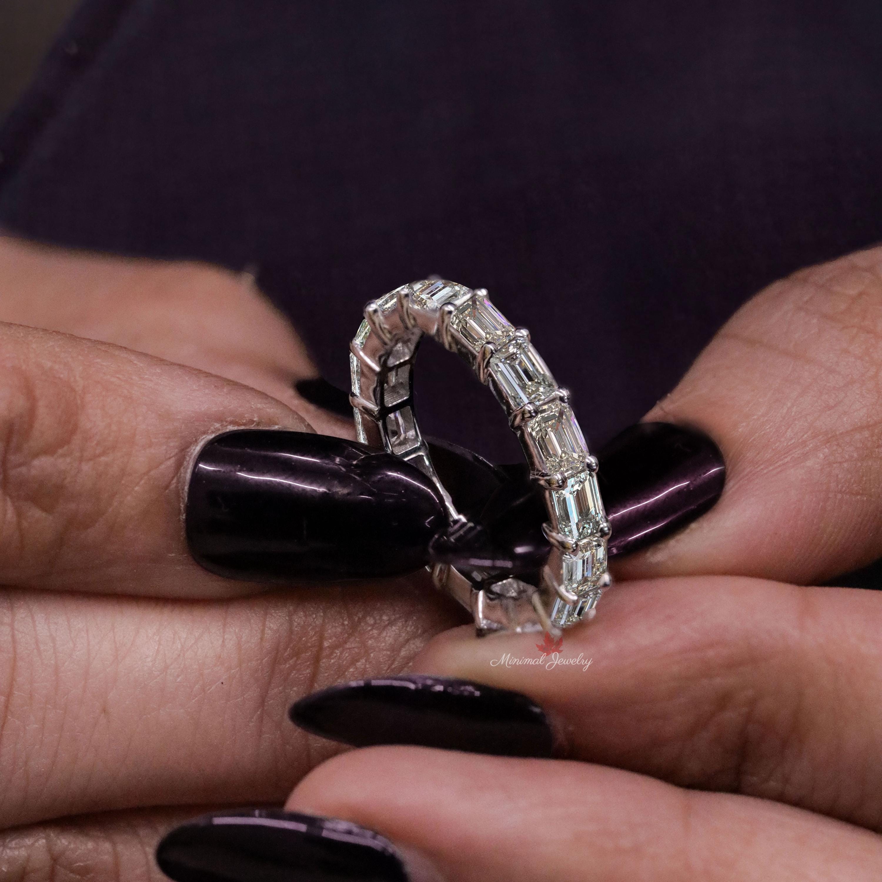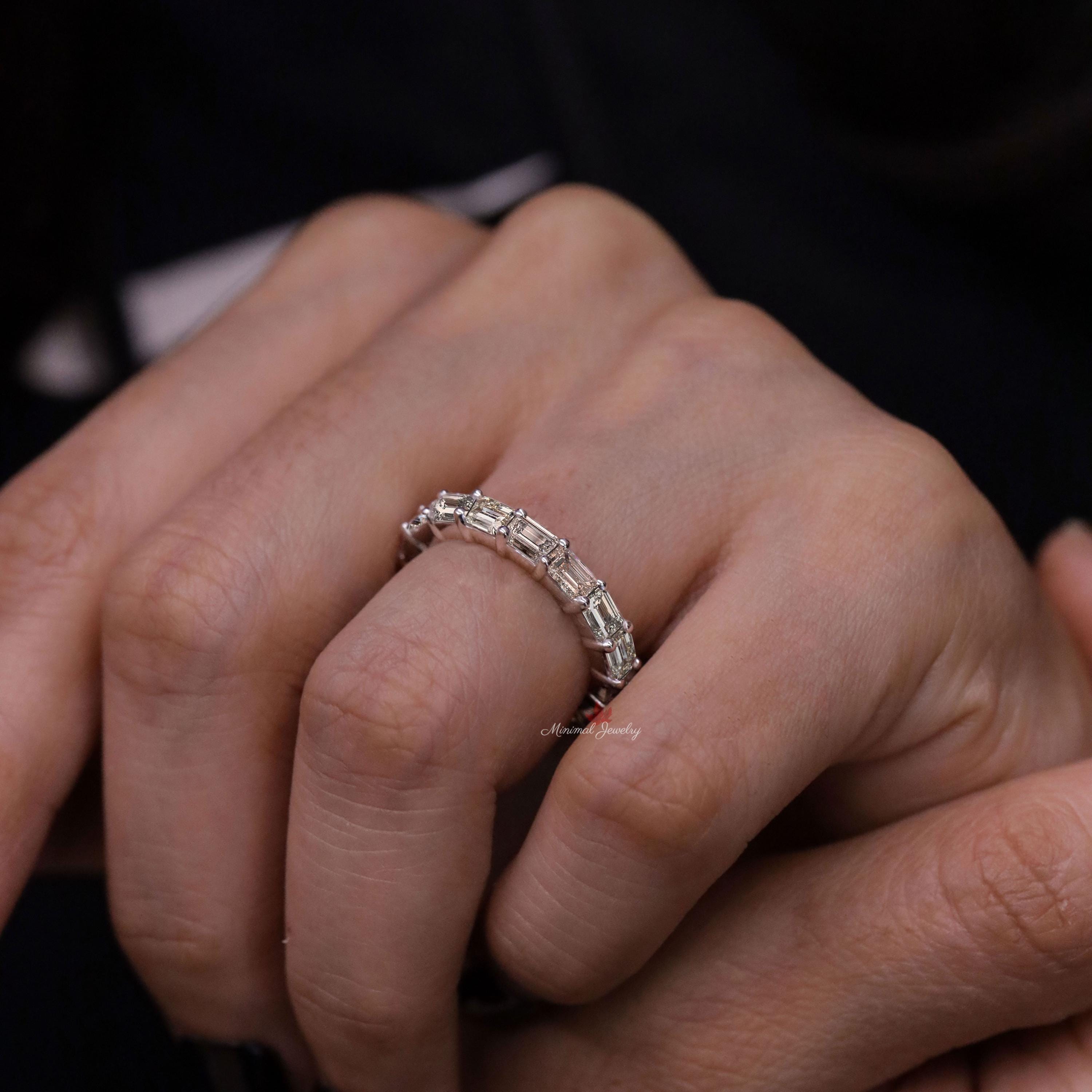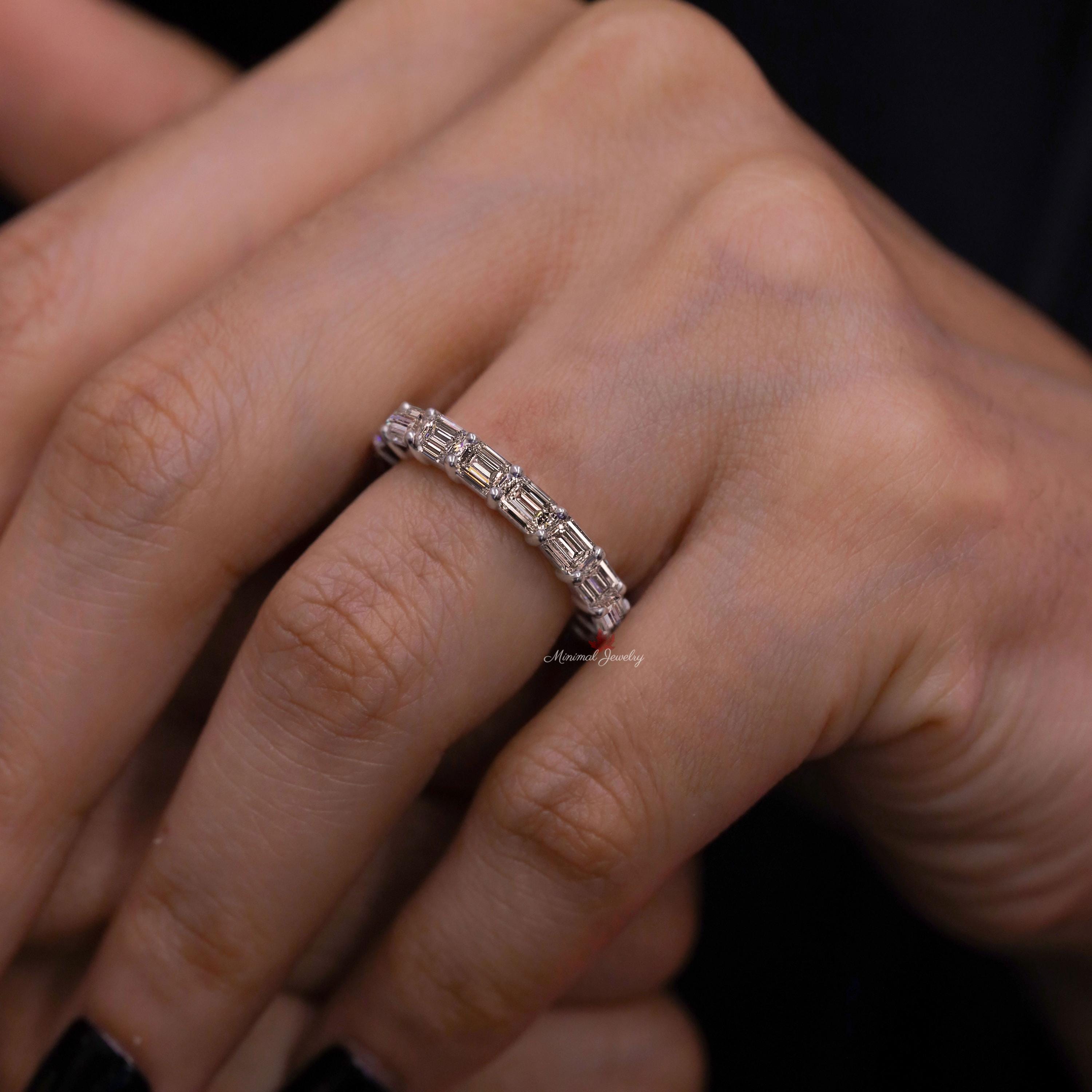 moissanite eternity band emerald cut wedding band east west bezel ring dainty wedding band gold emerald eternity ring women anniversary band