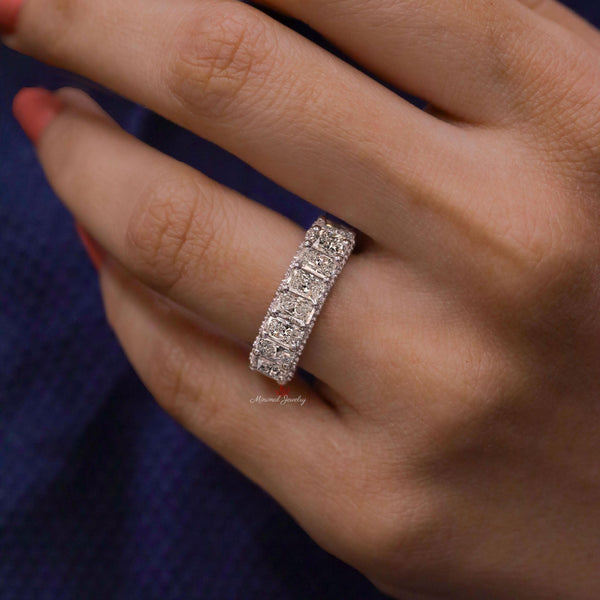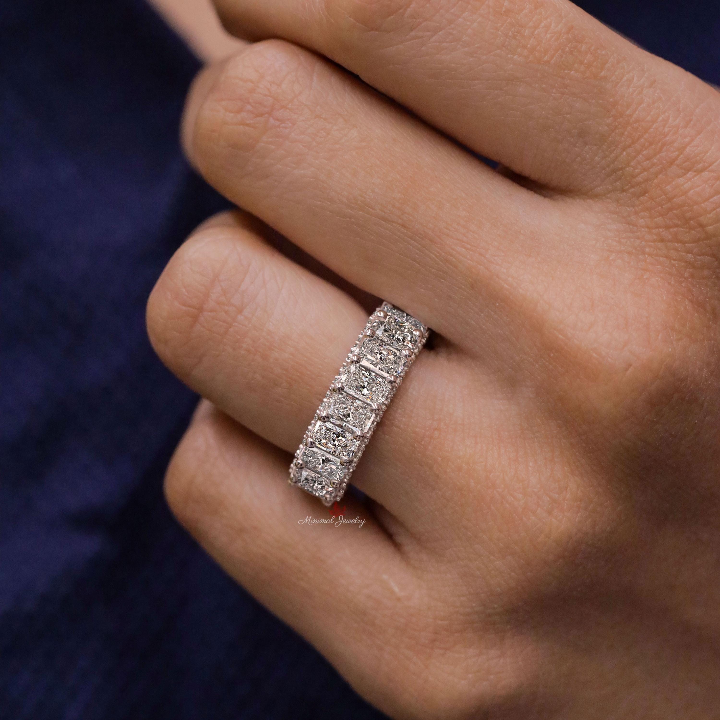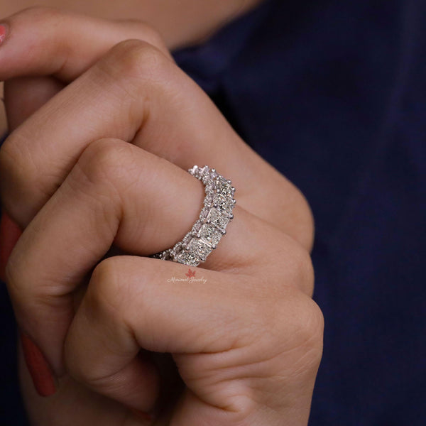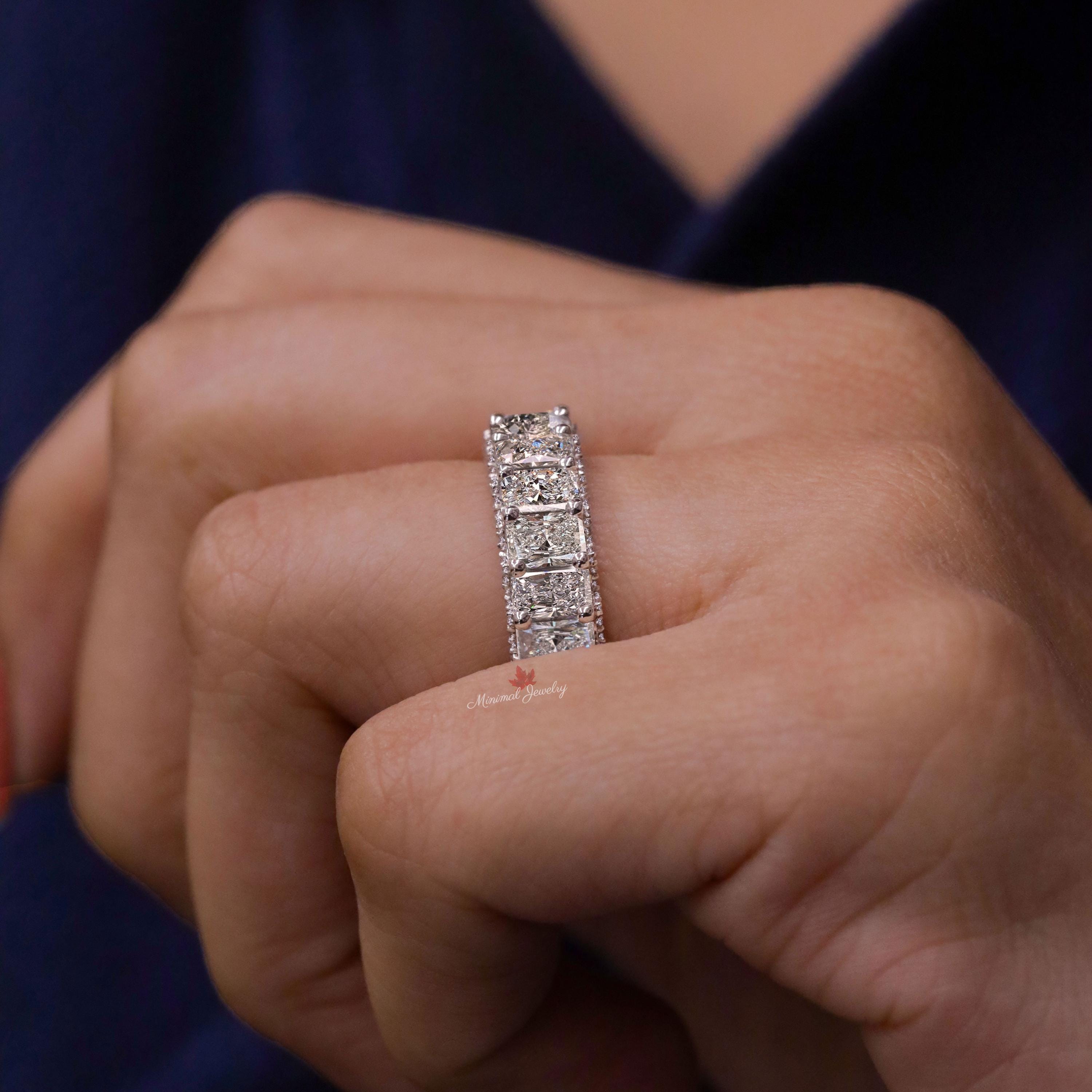 Moissanite wedding band Radiant eternity band,7.23 TCW full eternity ring,modern thick anniversary 4mm wedding band,Matching stackable rings