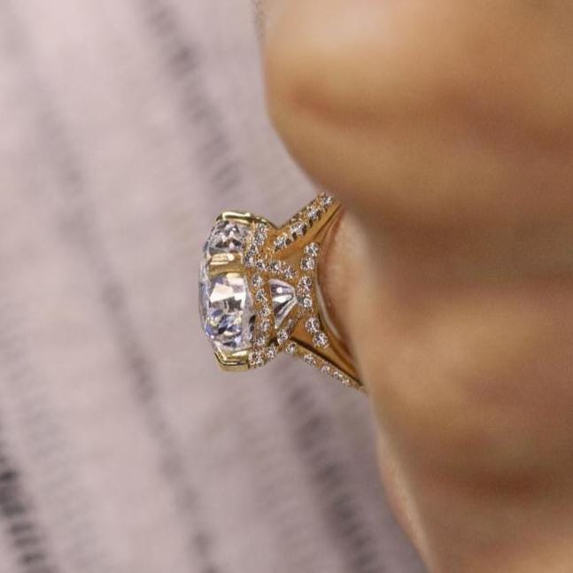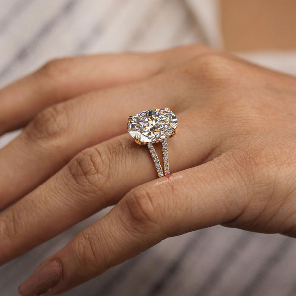 Oval Lab Grown diamond Engagement Ring 5.5CT IGI Certified Hidden Halo Split Shank Cathedral Set Oval Cut Diamond Wedding Ring for Women