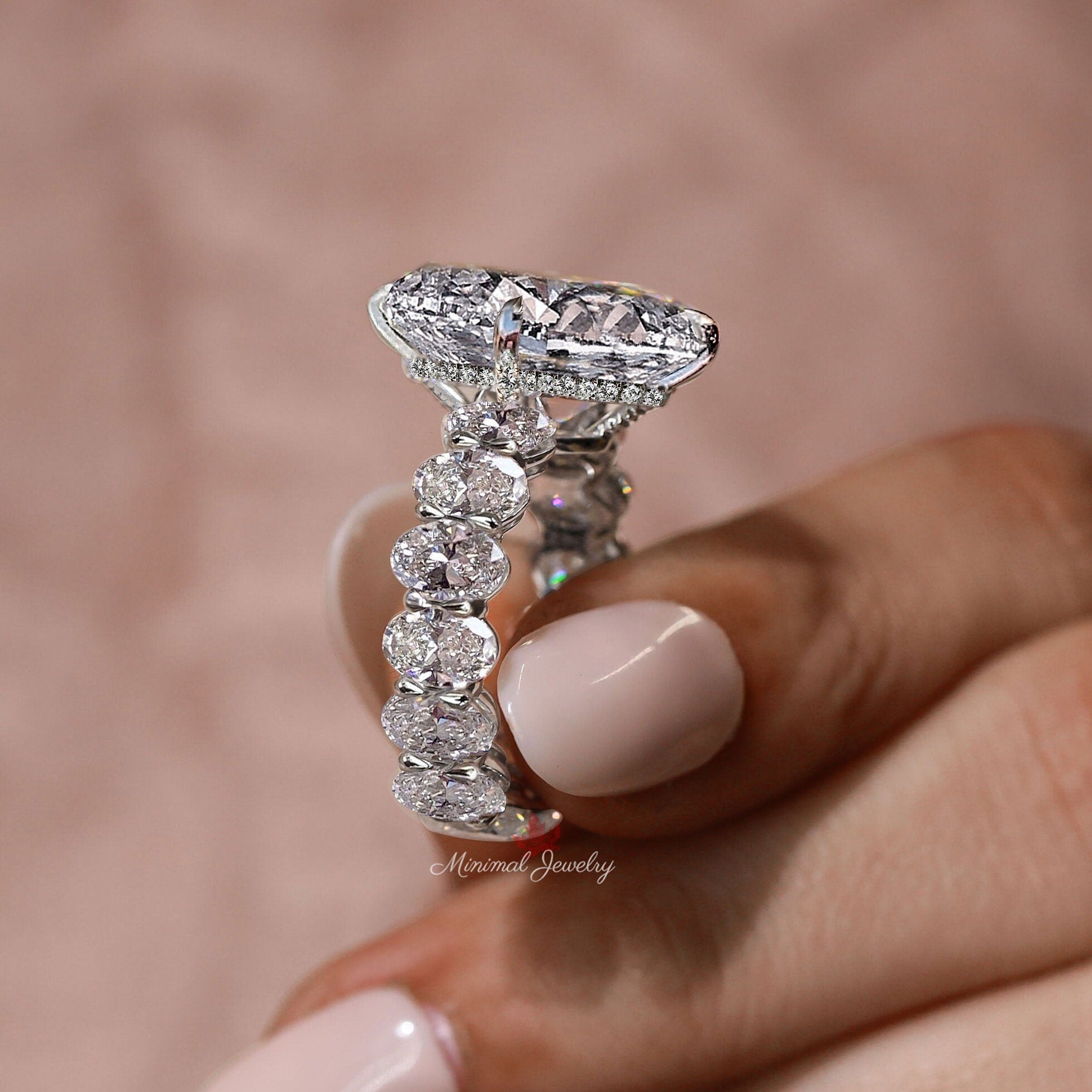 oval moissanite engagement ring hidden halo wide band 8.5 CT oval engagement ring big celebrity style Large solitaire oval cut wedding ring