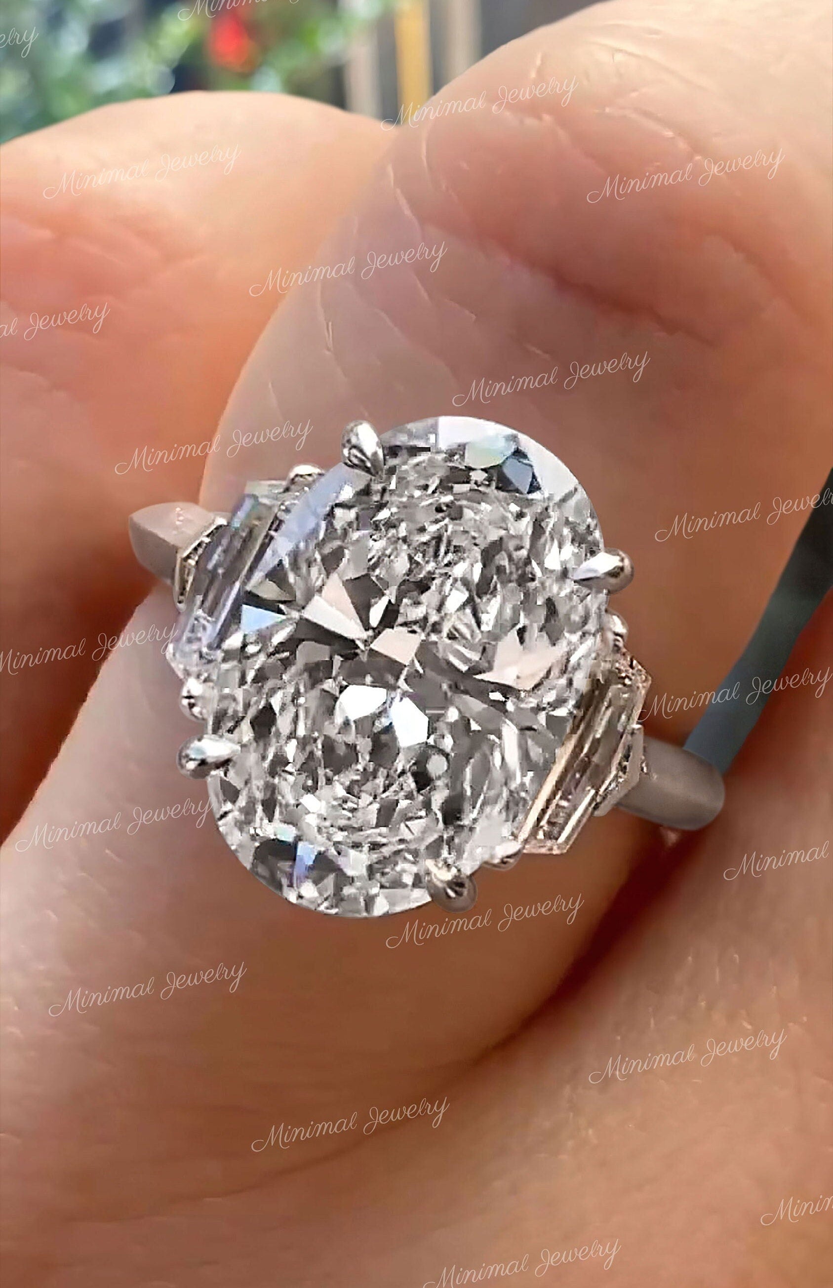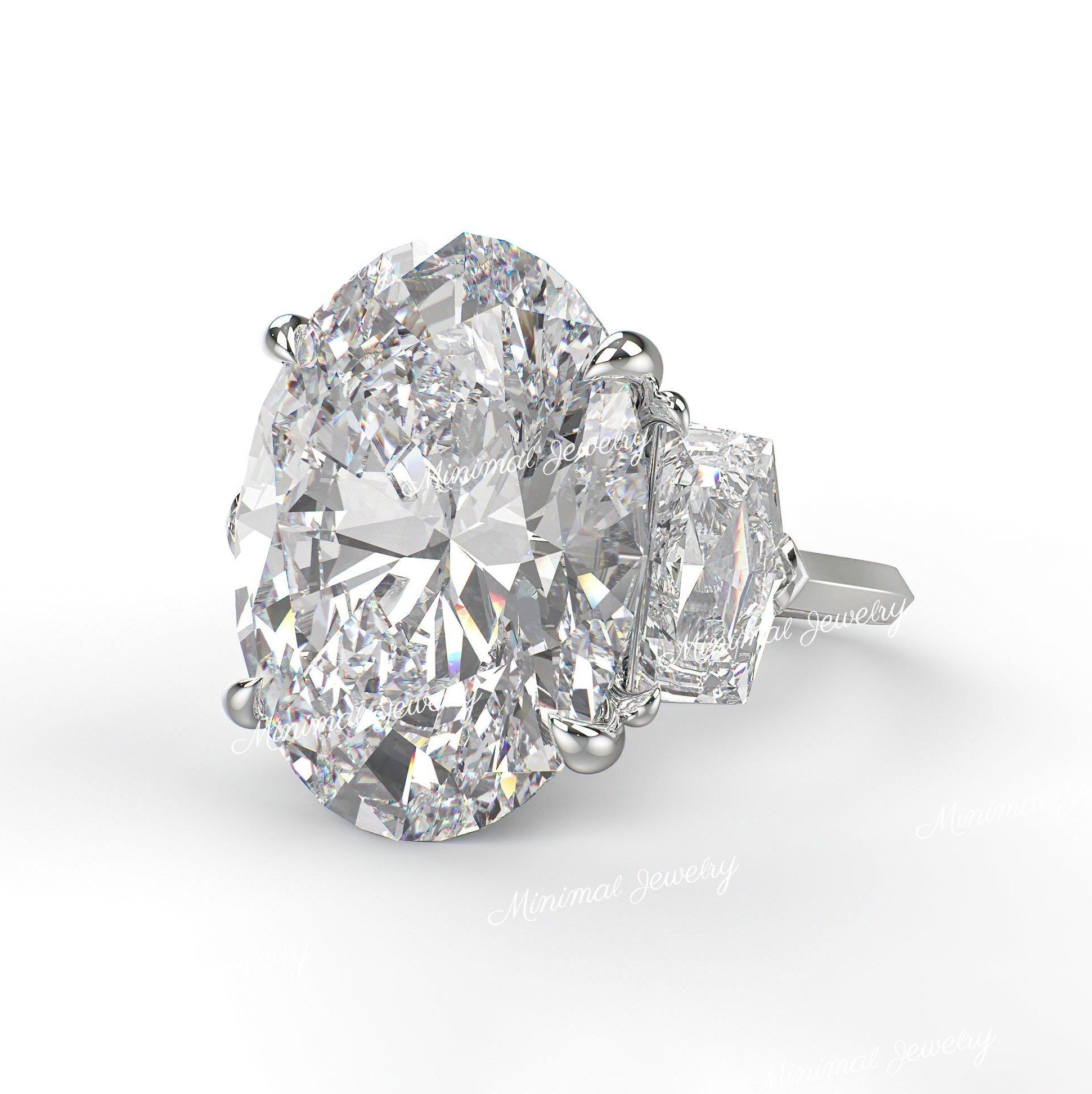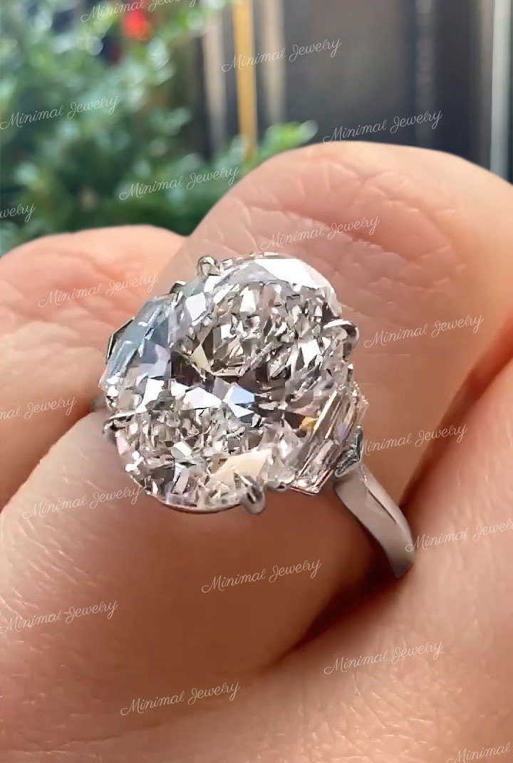 oval moissanite engagement ring Three stone wedding ring celebrity style shield & Large 7CT oval engagement ring anniversary ring for women