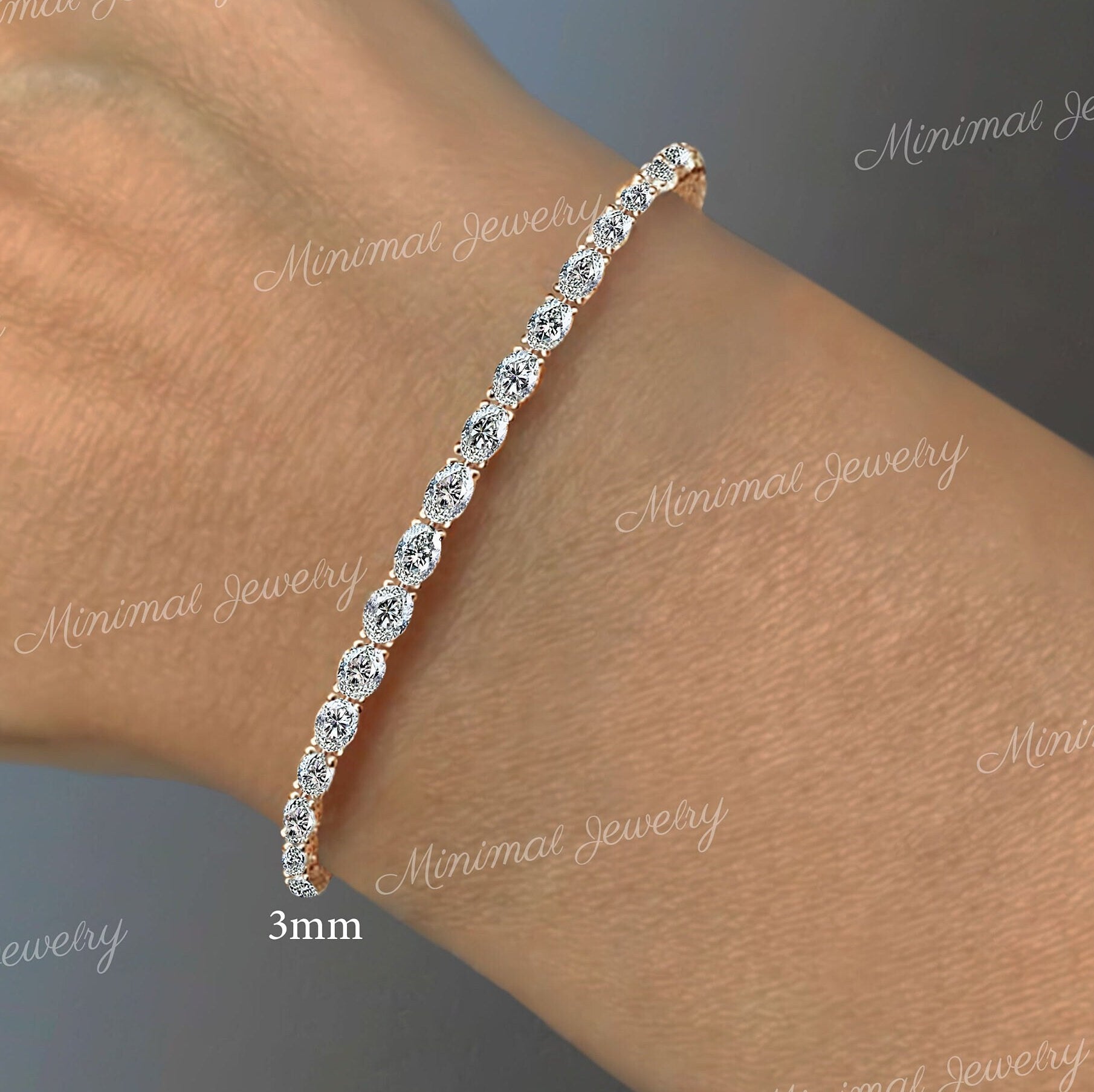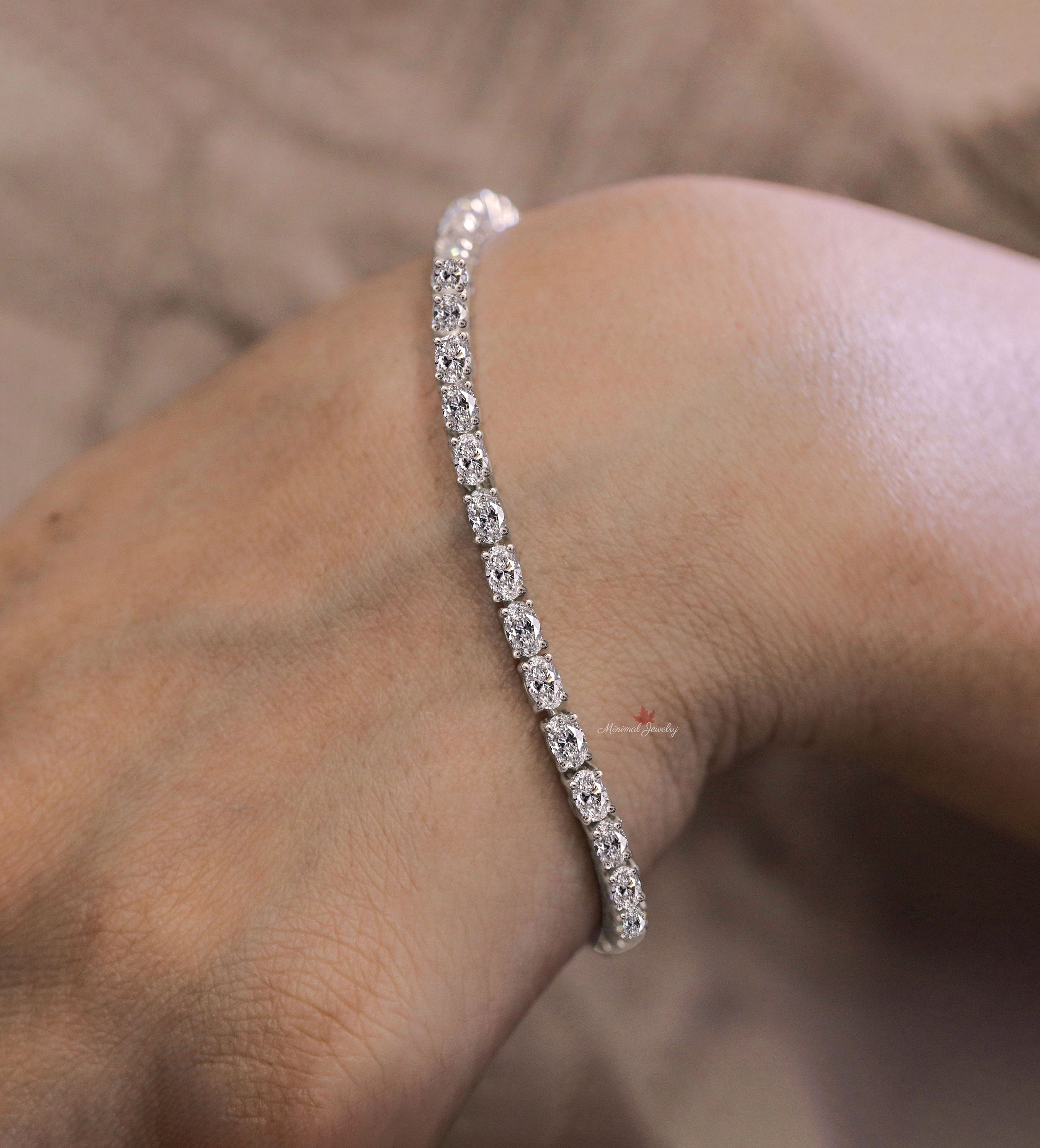 Oval moissanite tennis bracelet,10k/14k solid gold bracelet,eternity luxury,moissanite bracelet,wedding,dainty lab diamond tennis bracelet