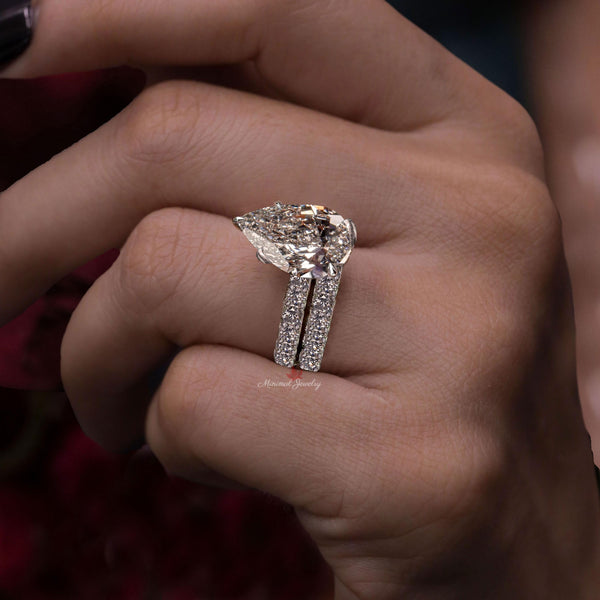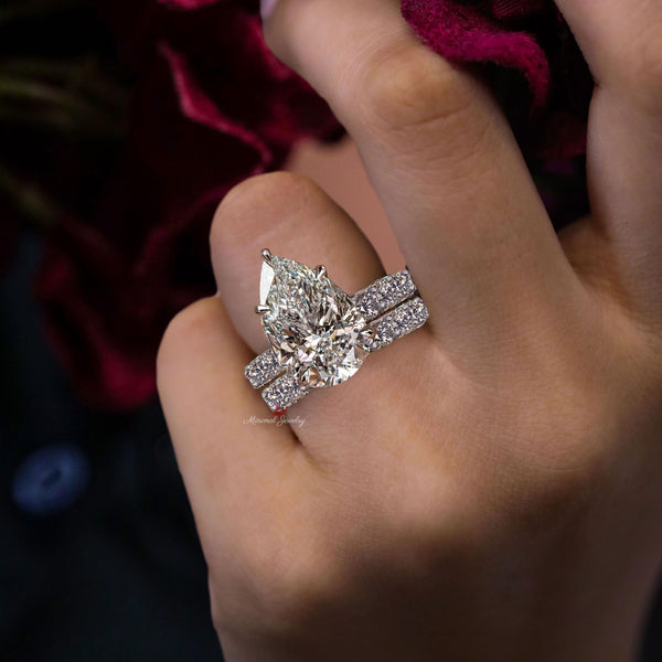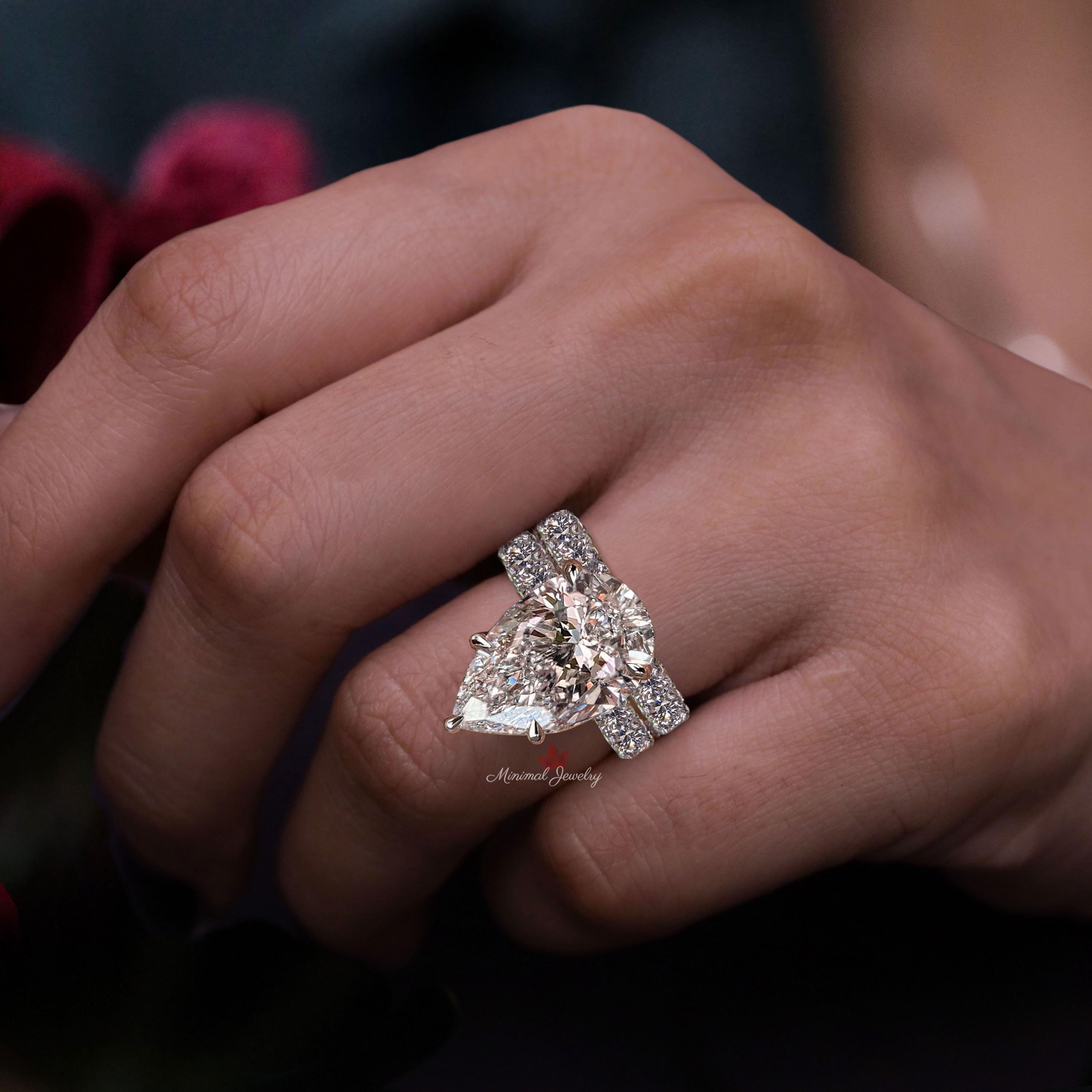 pear Lab Grown Diamond Engagement Ring Set IGI certified 6.5CT pear shaped Solitaire diamond wedding ring bridal set Anniversary Ring women