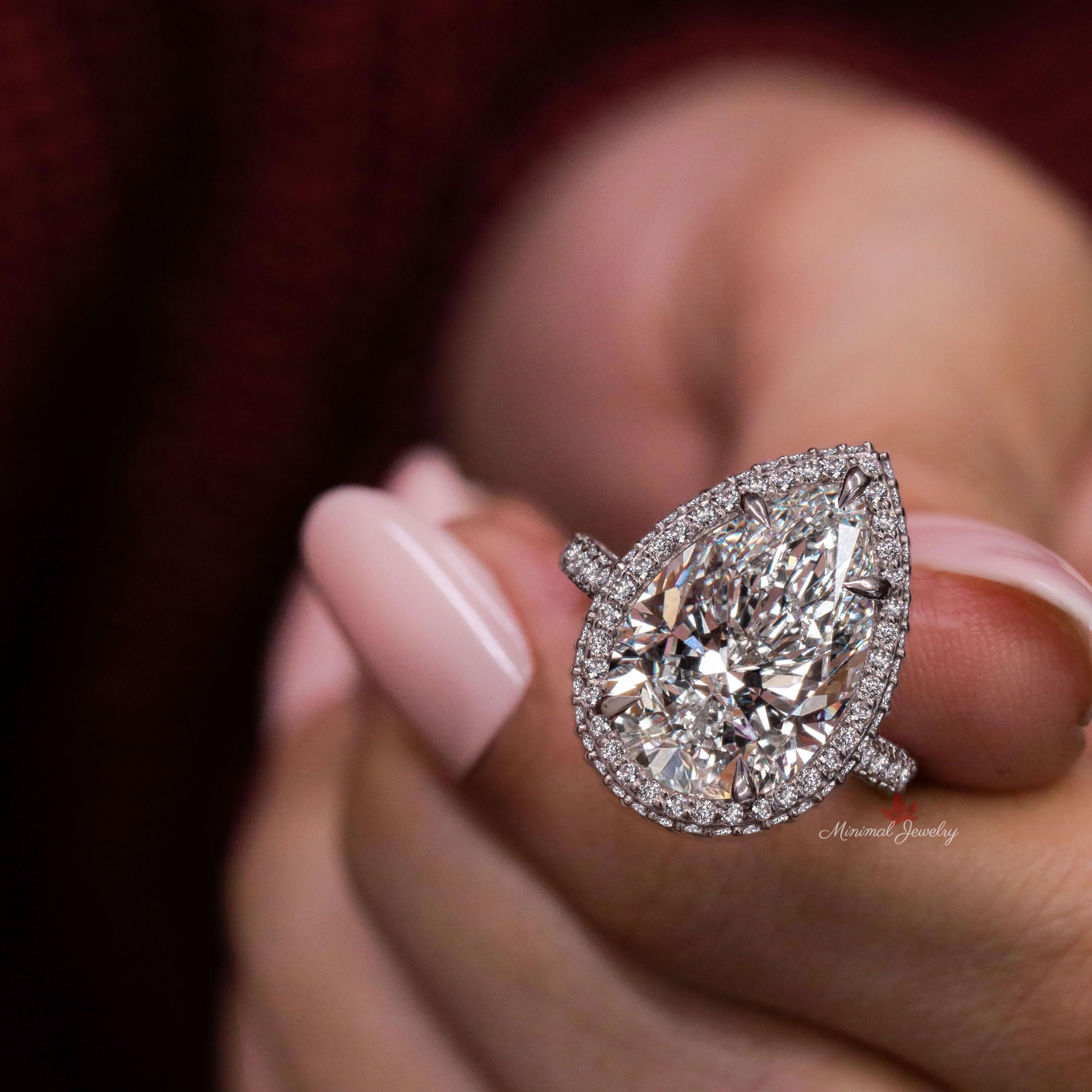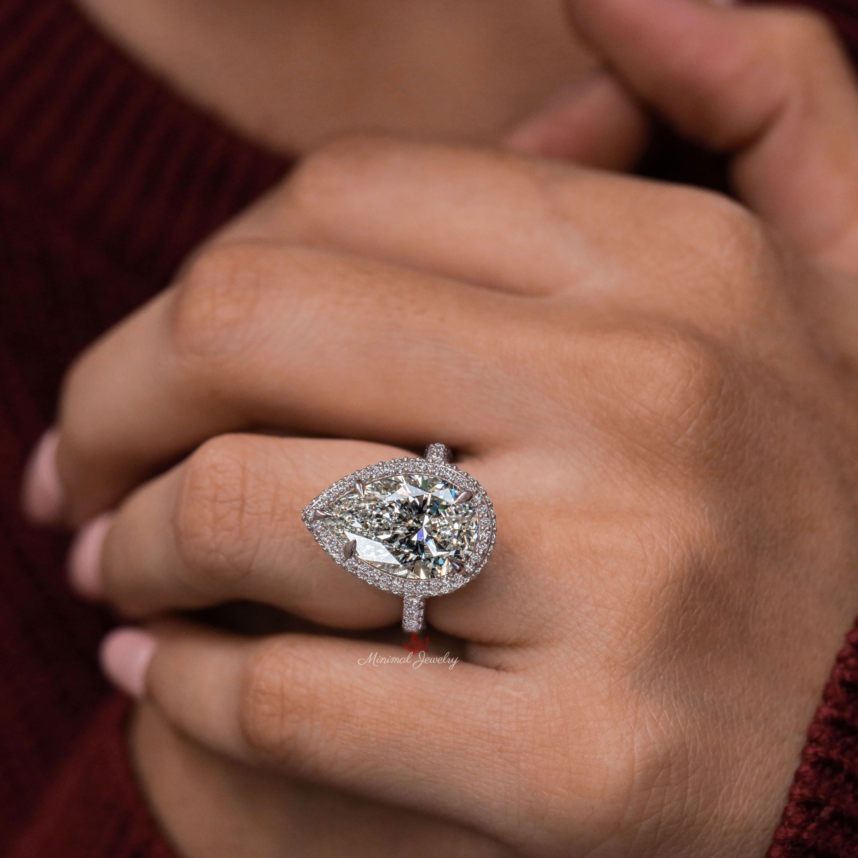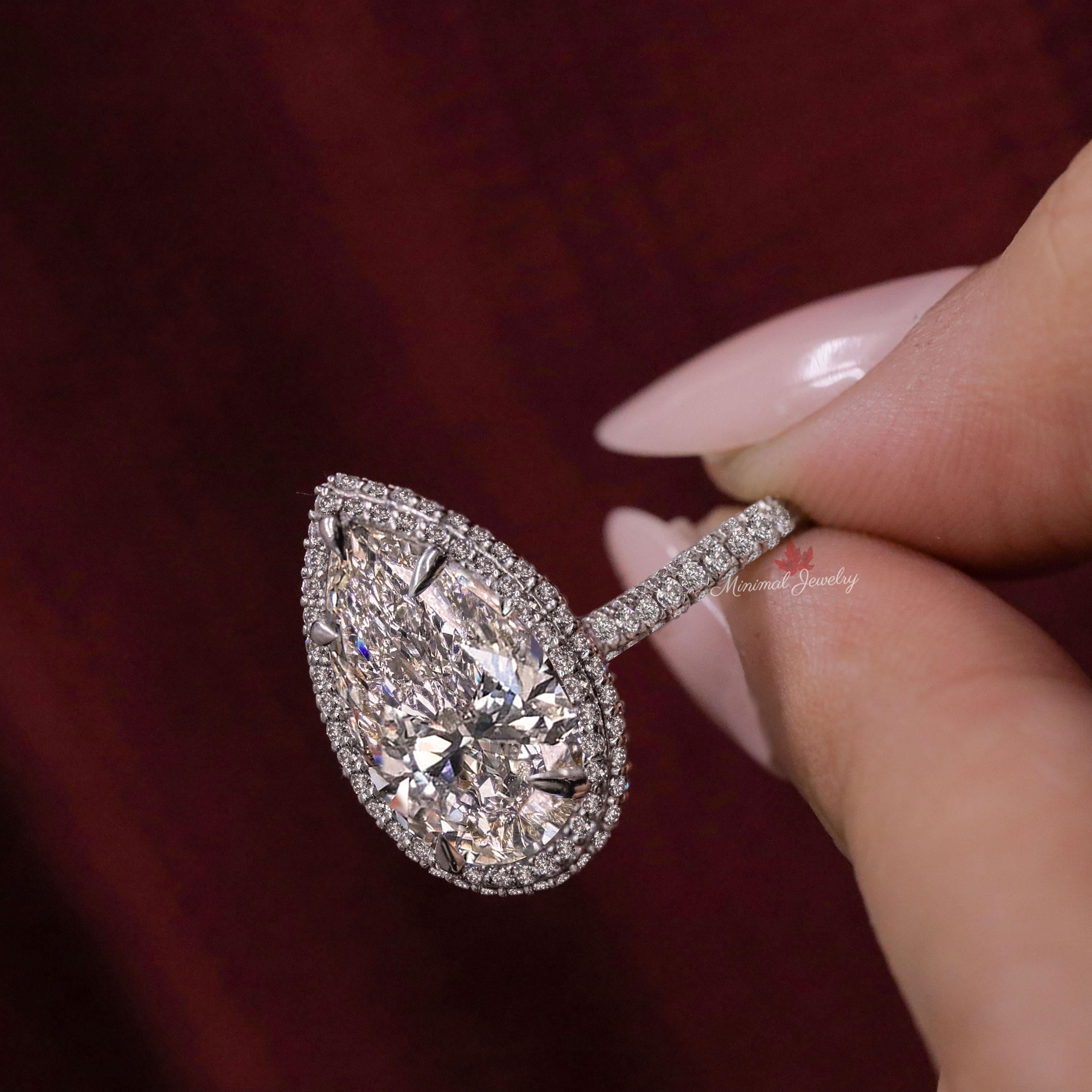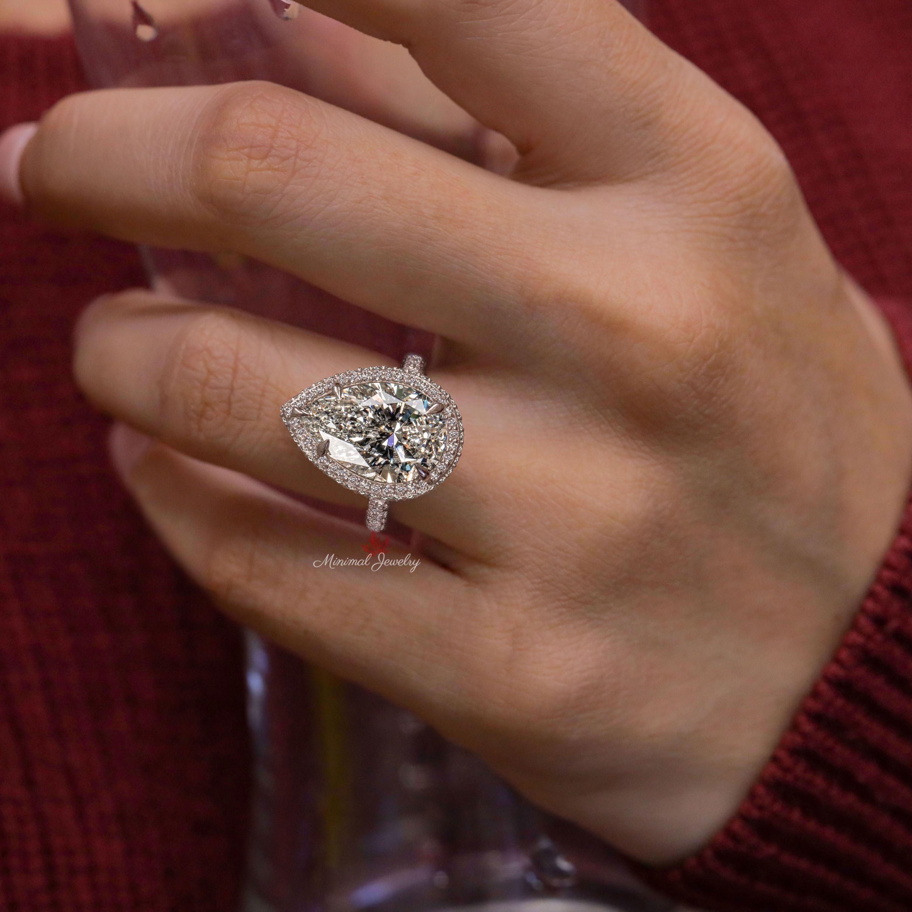 pear lab grown diamond halo ring 6CT pear shaped engagement ring IGI certified diamond wedding ring large diamond anniversary Ring for women