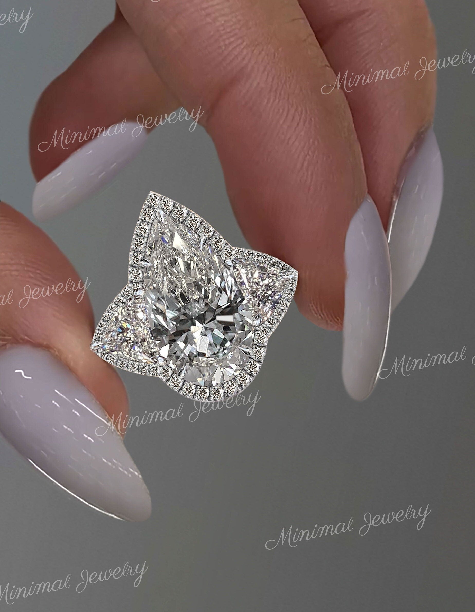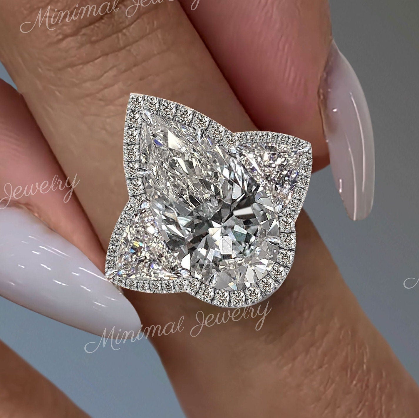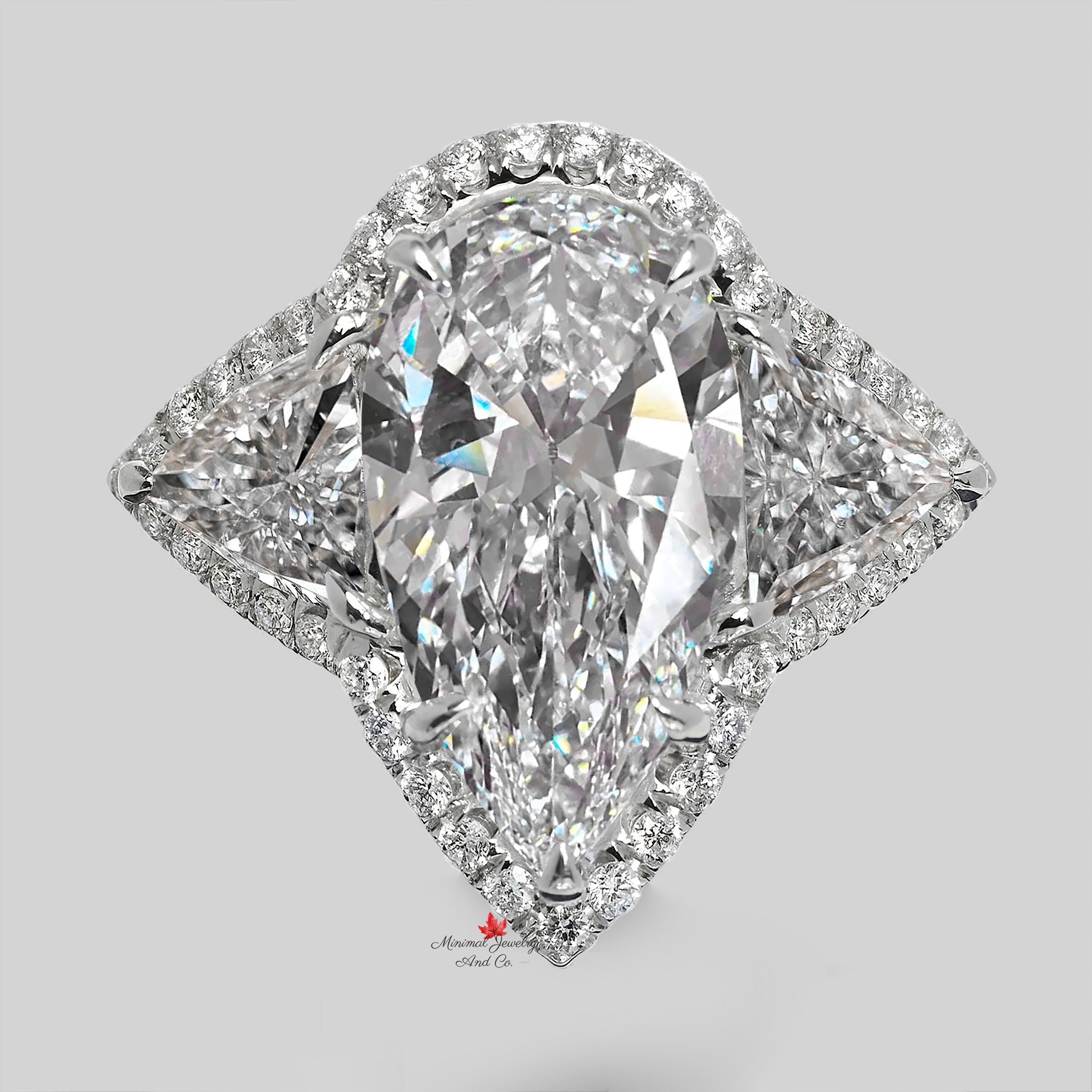 Pear shaped engagement ring Three stone 3CT pear moissanite halo wedding ring white gold teardrop anniversary ring diamond alternative ring