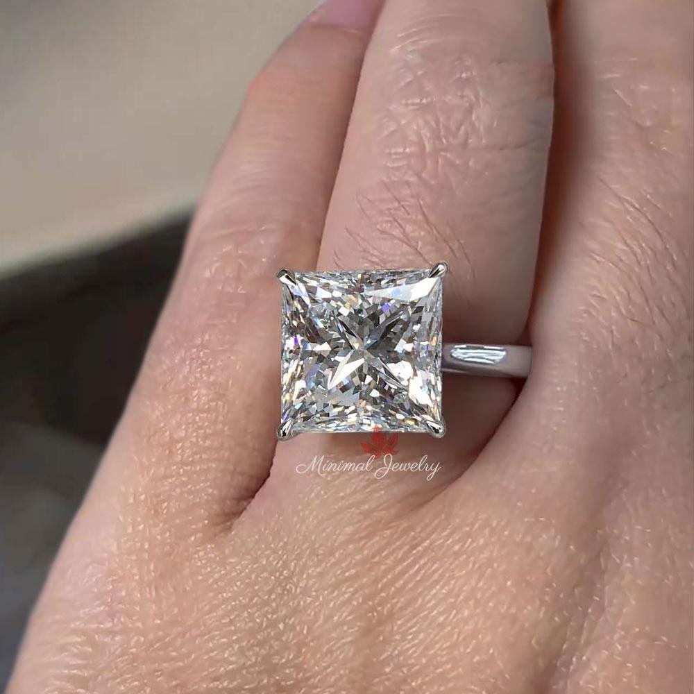 princess moissanite engagement ring 9.5CT simple solitaire gold cathedral ring Statement Wedding Ring large diamond anniversary gift ring