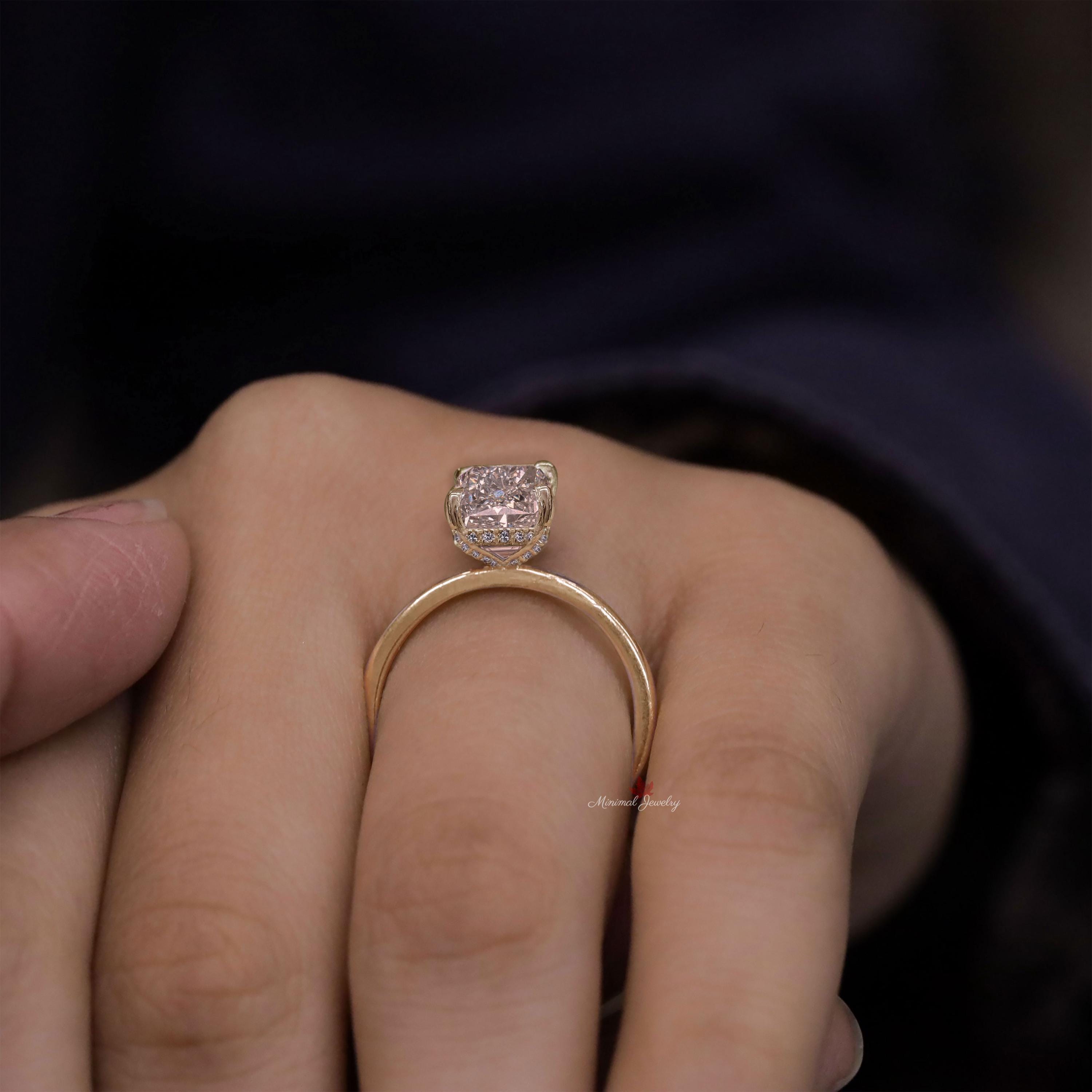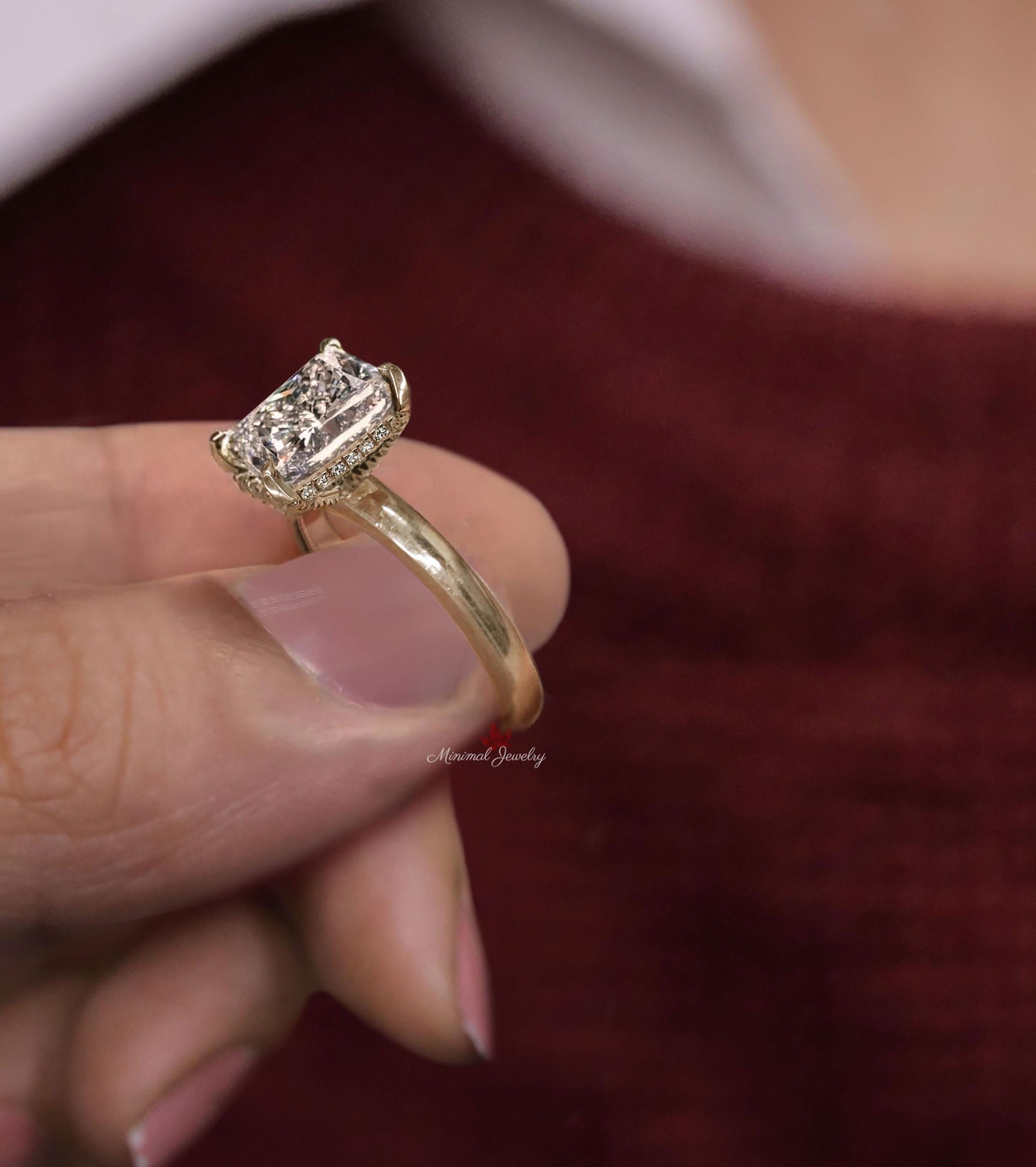 Radiant cut lab grown diamond ring 2.8 CT IGI Certified Solitaire Engagement wedding Ring Hidden Halo Anniversary ring promise ring for her