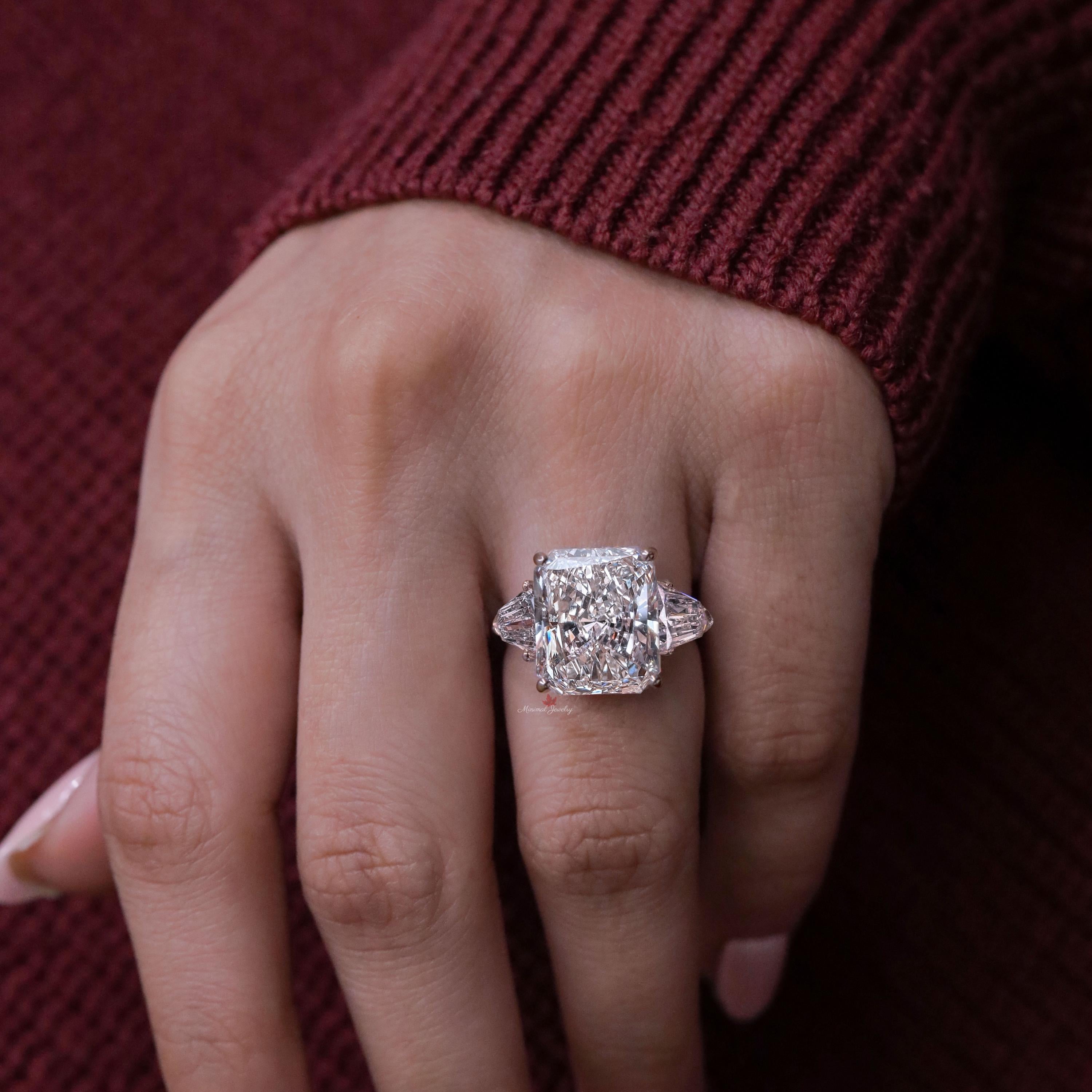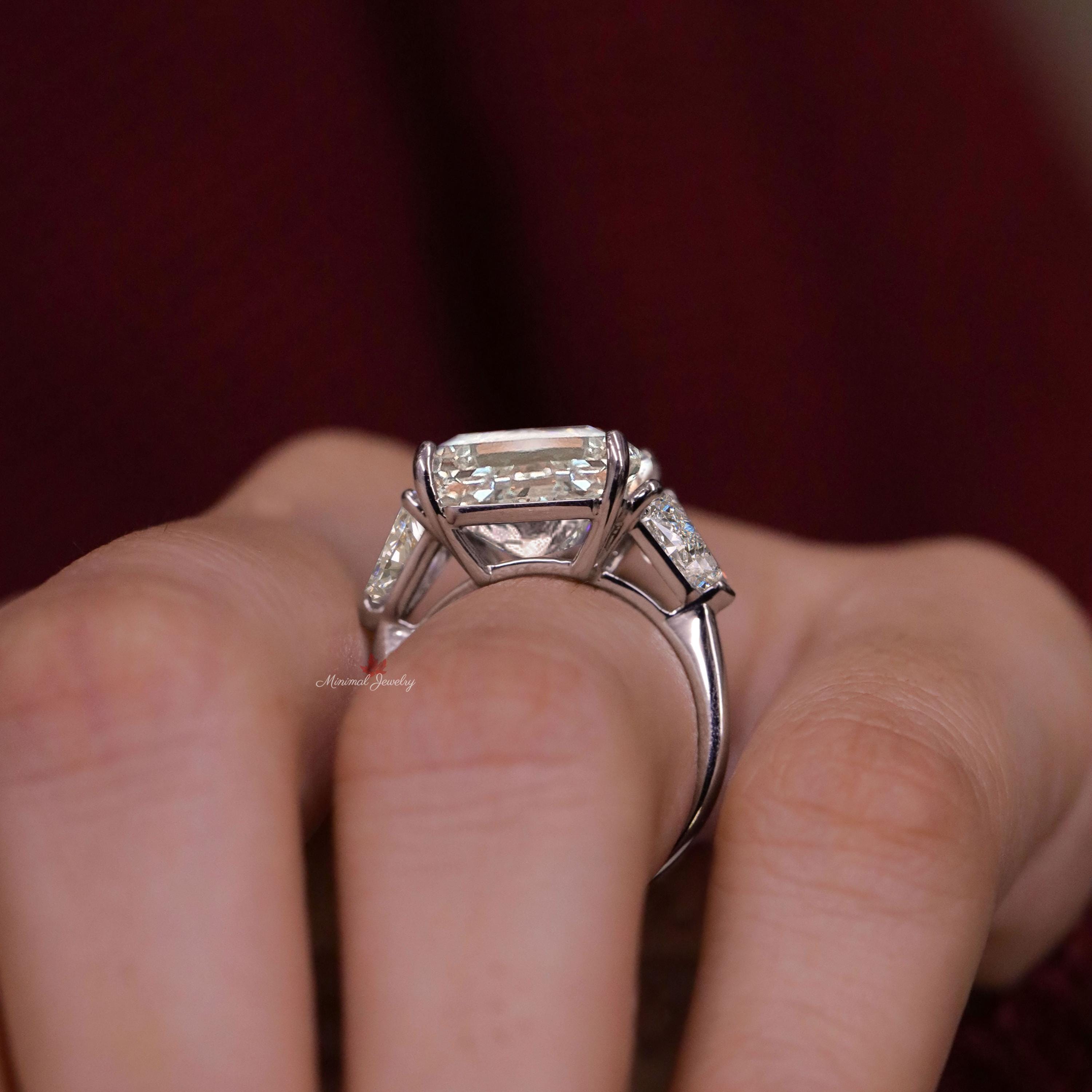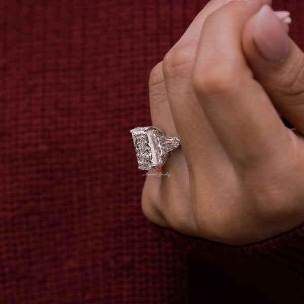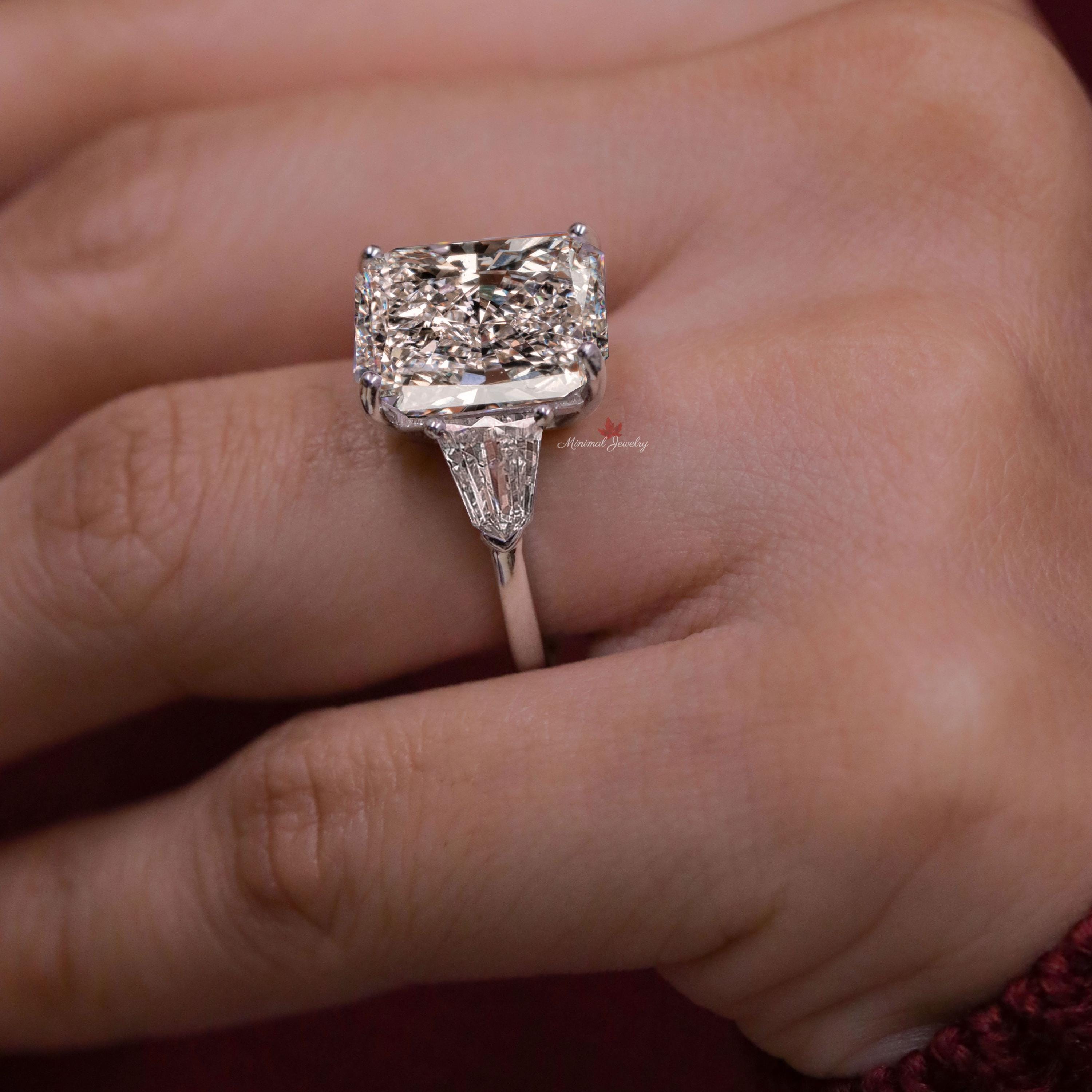 Radiant Cut Moissanite Engagement Ring 16CT Three Stone Wedding Anniversary Ring for Women 14k gold Large diamond Statement ring Side Shield