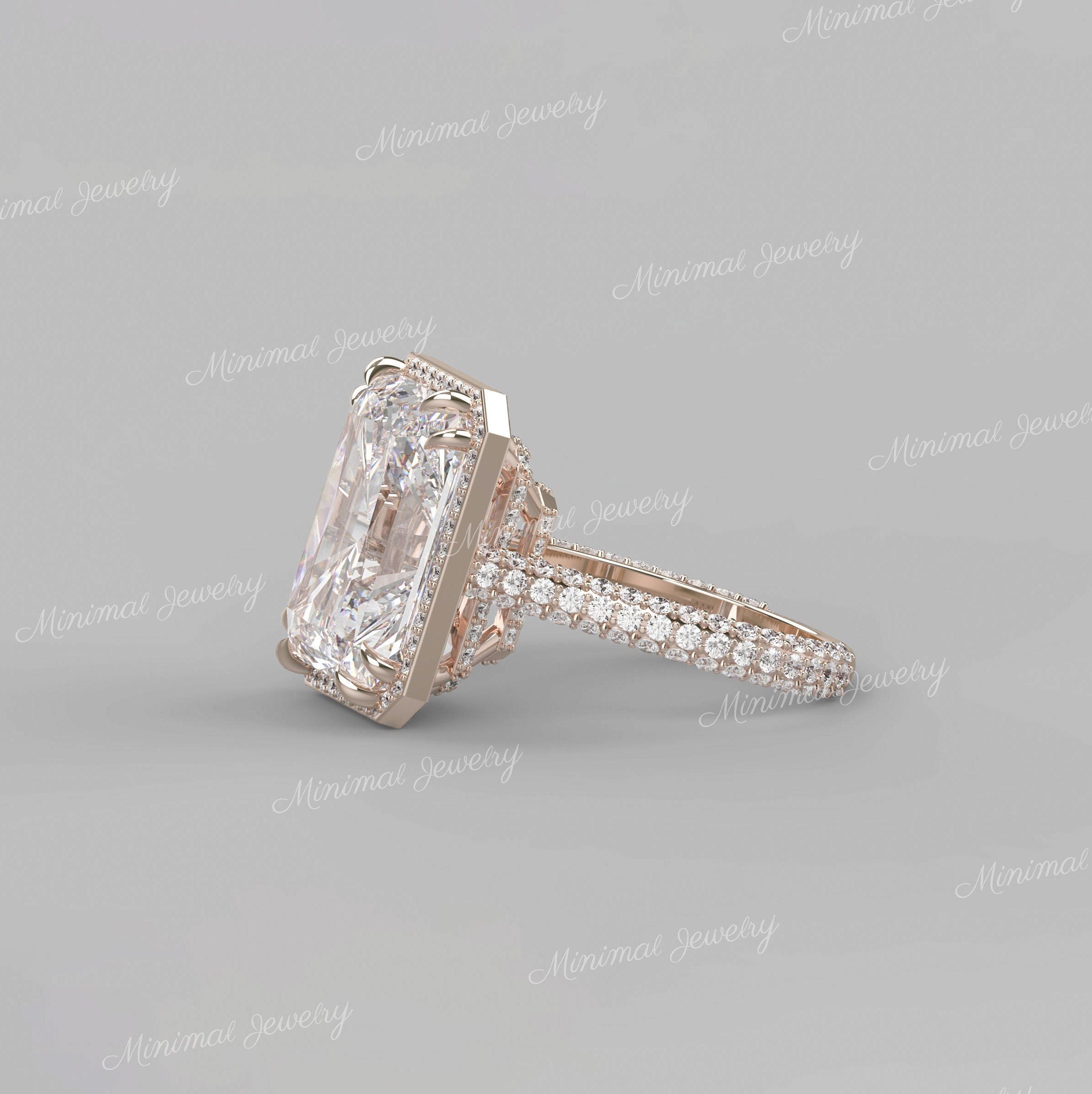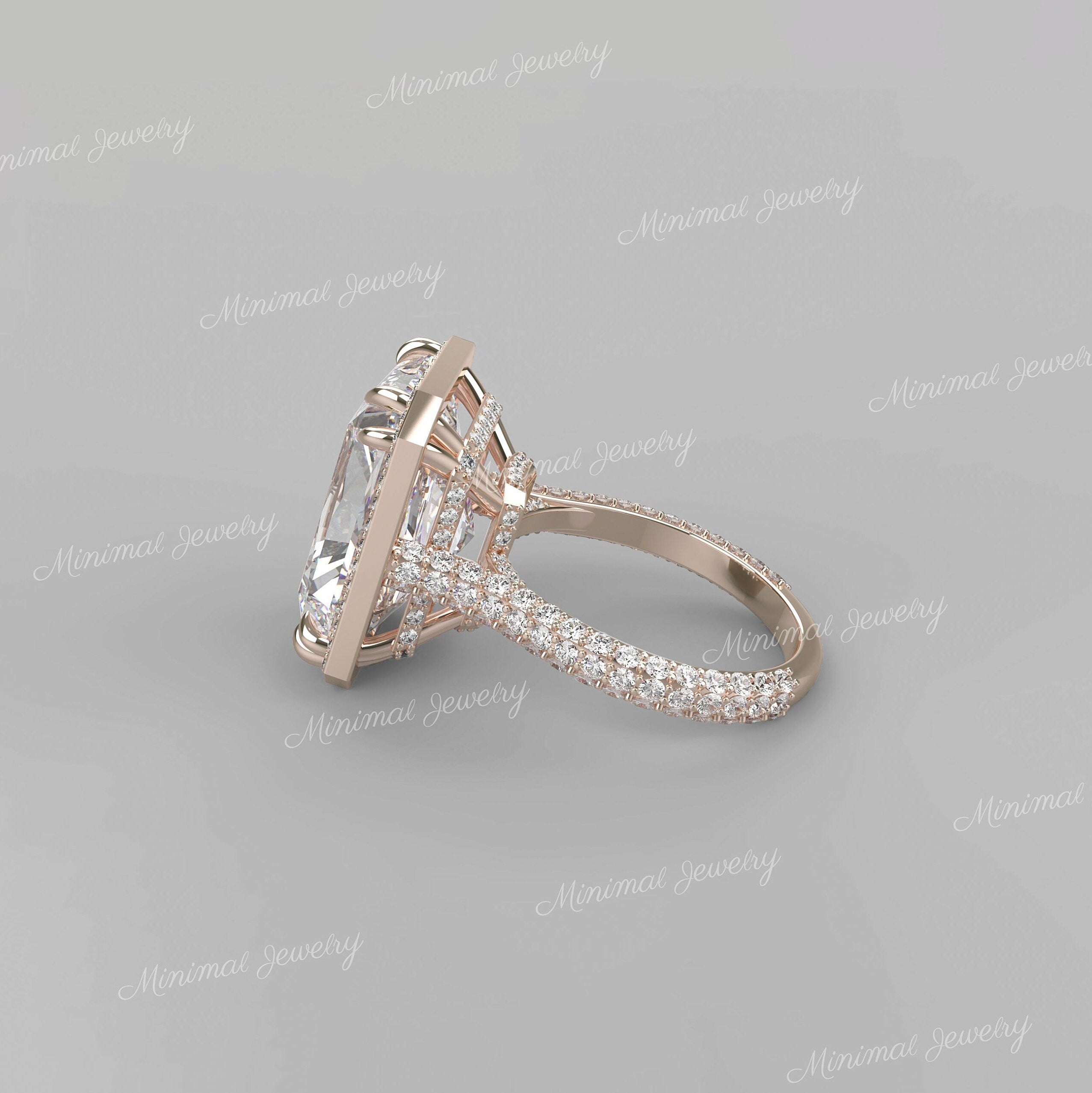 Handmade 19 CT radiant moissanite engagement ring,hidden halo engagement ring,14k gold celebrity style big large,halo radiant cut ring,wedding ring → Occasions: Engagement & Wedding DESCRIPTION -------------------- STYLE : Solitaire | Hidden halo • Moissanite Details Stone Type : Moissanite - High Quality Main Stone : Radiant Size (mm) : 16*13 Carat Weight : 19 Band & Halo & Side Stone : Round Size (mm) : 1.1 / 1 Carat Weight : 1.0 Stone Total CTW : 20 Color : Colorless Clarity : VVS Metal (Solid) : Silver,Gold,Platinum Band Width : 2 ▶ 𝐖𝐞𝐝𝐝𝐢𝐧𝐠 𝐁𝐚𝐧𝐝 𝐡𝐞𝐫𝐞 : https://bit.ly/Wedding_Band ▶ 𝐆𝐨 𝐓𝐨 𝐒𝐡𝐨𝐩 𝐒𝐞𝐜𝐭𝐢𝐨𝐧𝐬 𝐇𝐞𝐫𝐞 : ▶ Engagement Ring : https://bit.ly/EngagementRings_ ▶ Celebrity Style Ring : https://bit.ly/CelebrityStyleRing ▶ Diamond Hoop Earrings: https://bit.ly/DiamondHoopEarring ▶ Tennis Bracelet : https://bit.ly/TennisBraceletsx ▶ Tennis Necklace : https://bit.ly/TennisNecklaces 𝐅 𝐎 𝐋 𝐋 𝐎 𝐖 ∙ 𝐔 𝐒 Instagram : @minimaljewelryandco Facebook : @minimalmoissanitejewelry Pinterest : @minimaljewelryandco YouTube : @minimaljewelryandco 𝐖𝐚𝐫𝐫𝐚𝐧𝐭𝐲 𝐚𝐧𝐝 𝐒𝐞𝐫𝐯𝐢𝐜𝐞: ------------------------------ • We offer a 1 Year warranty on all our Jewelry. • We also provide paid service after completion of the warranty. 𝐓𝐡𝐚𝐧𝐤 𝐲𝐨𝐮 𝐟𝐨𝐫 𝐯𝐢𝐬𝐢𝐭𝐢𝐧𝐠 𝐨𝐮𝐫 𝐬𝐭𝐨𝐫𝐞, 𝐬𝐞𝐞 𝐲𝐨𝐮 𝐬𝐨𝐨𝐧. --------------------------------------------------------------