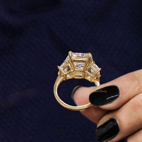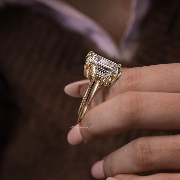Three stone emerald cut engagement ring 9 CT large emerald cut moissanite ring statement wedding ring women diamond anniversary ring gift