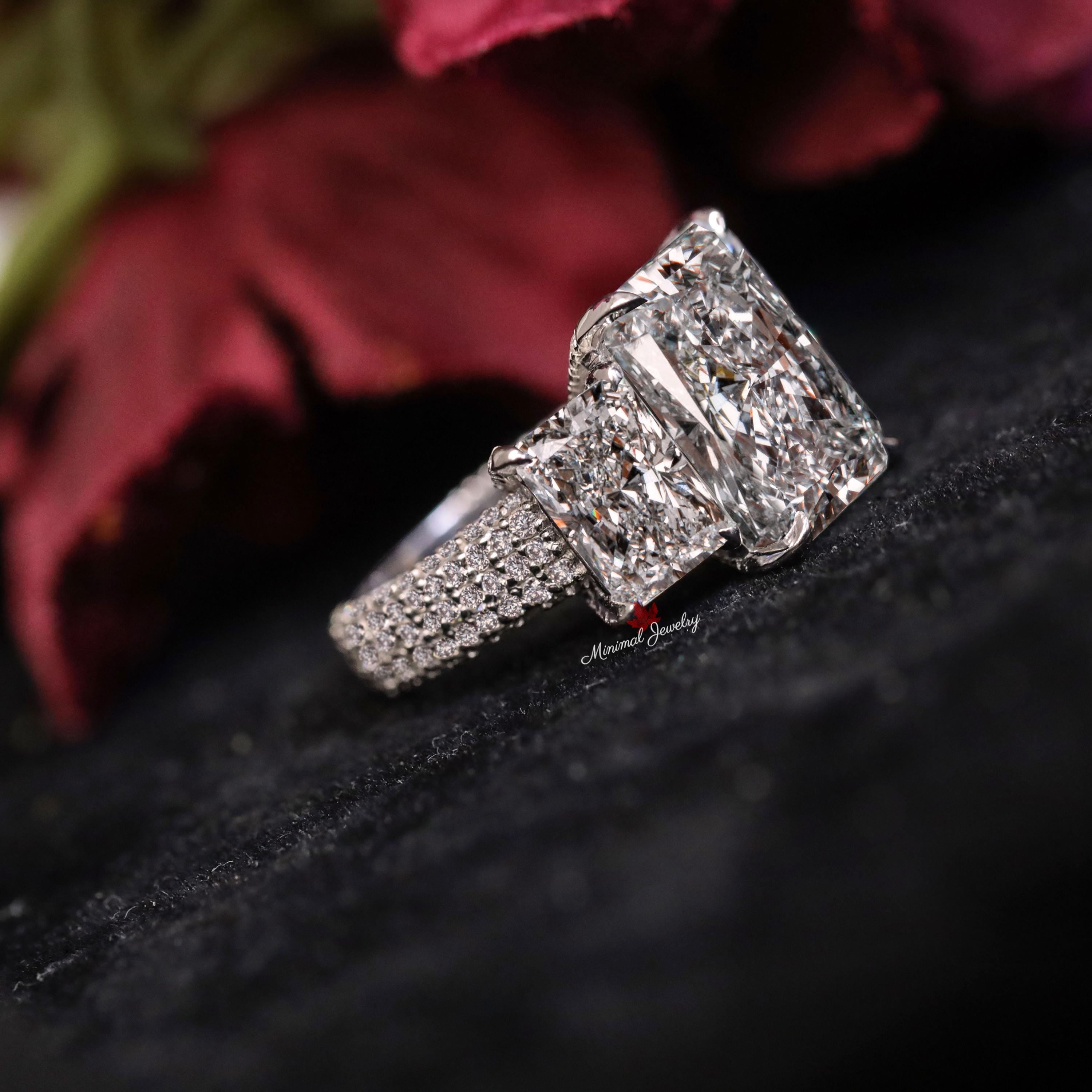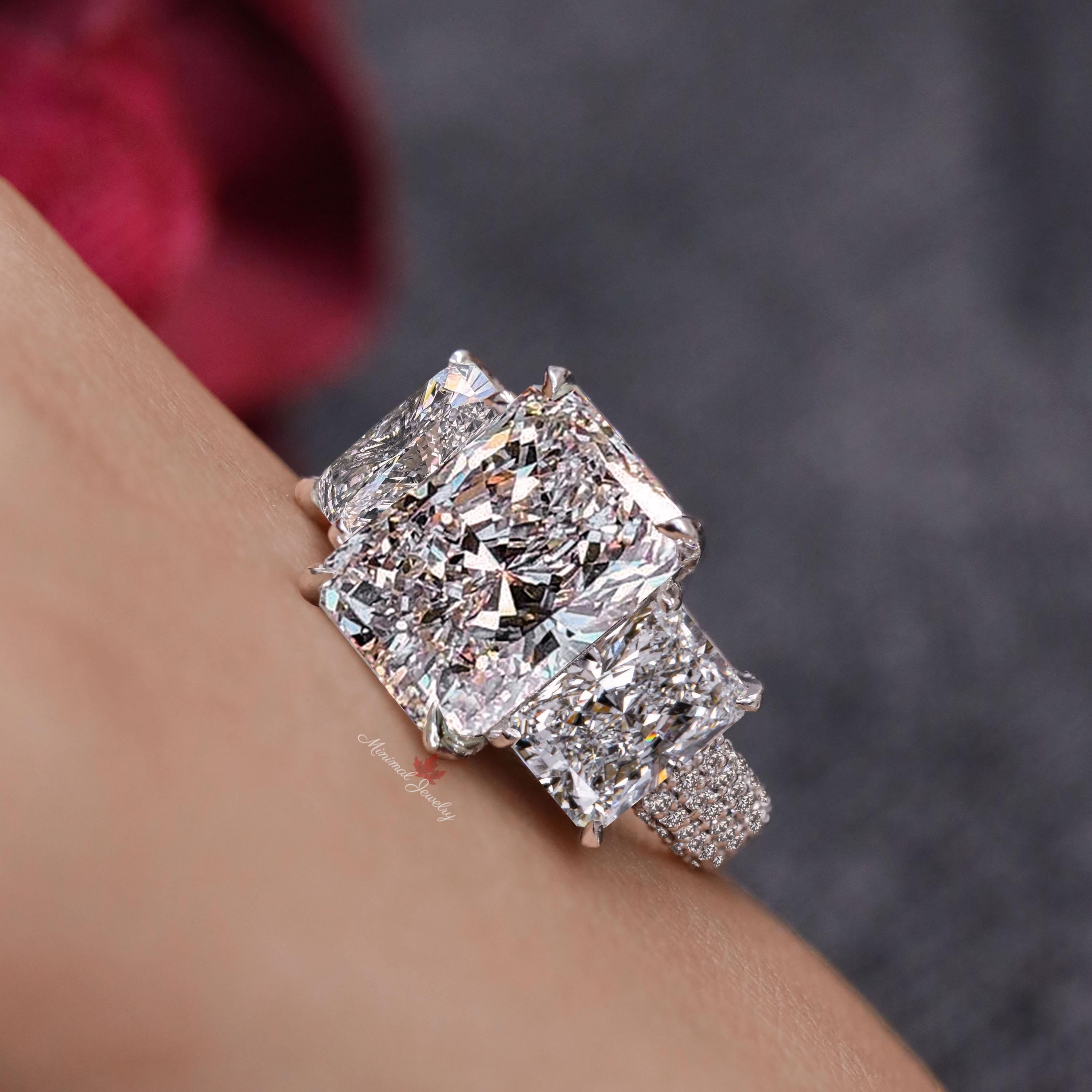 Handmade 9.5 CT Three stone Radiant cut moissanite engagement ring,unique celebrity...